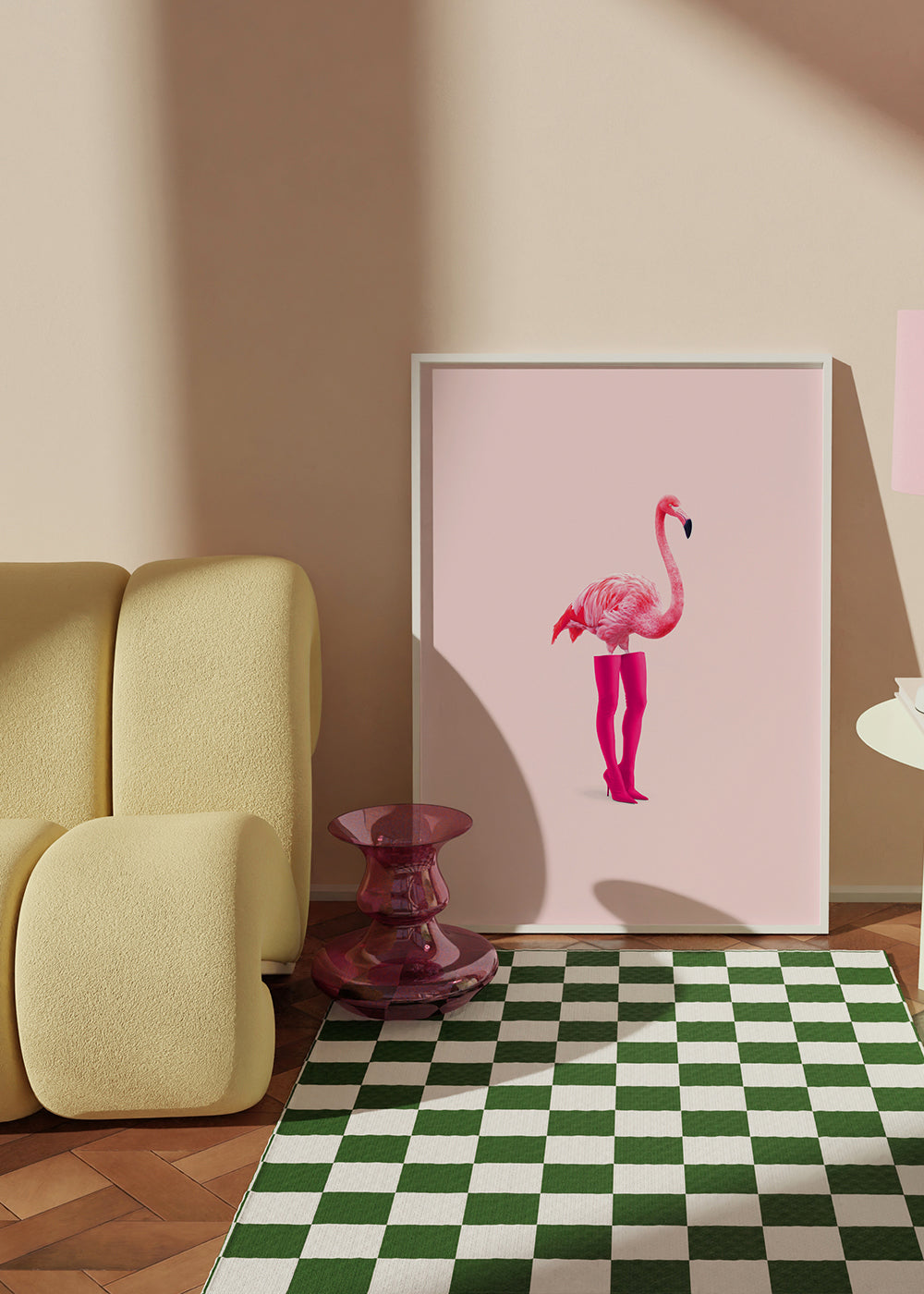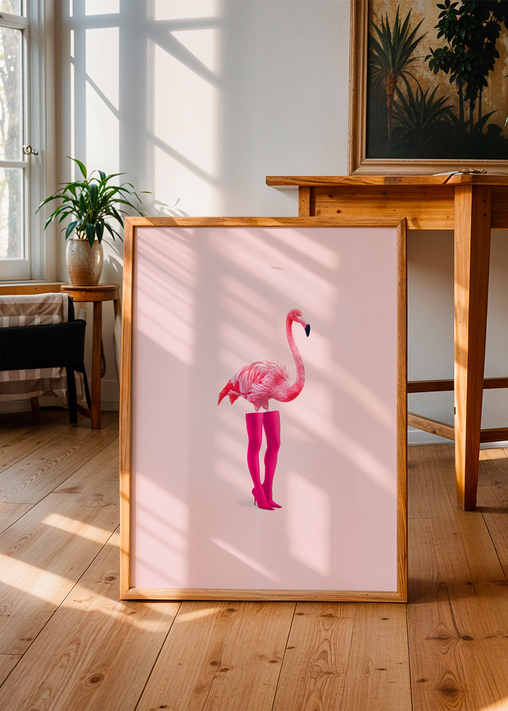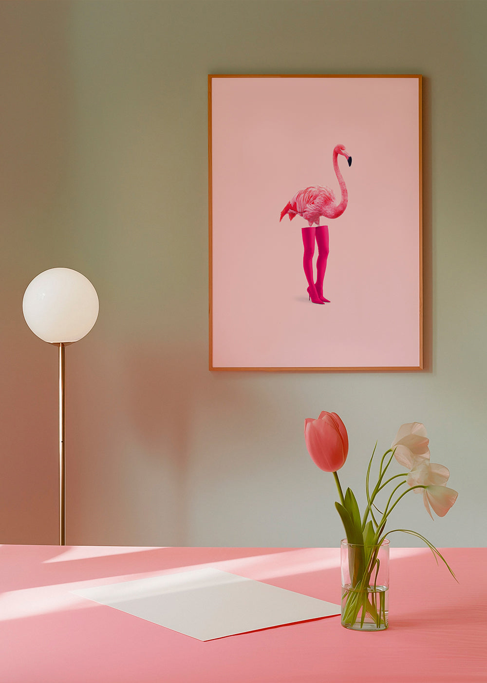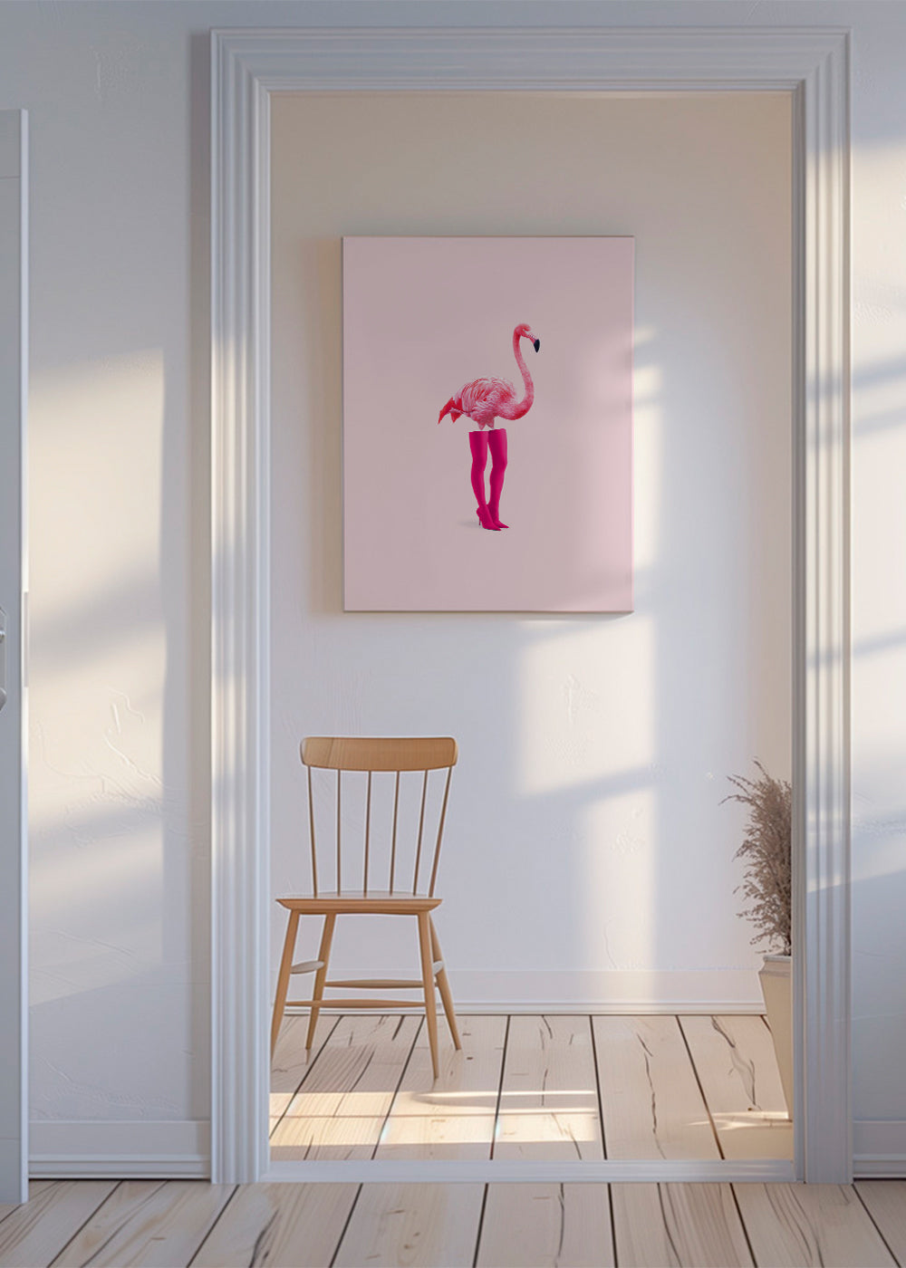 Beautiful poster inspired by the collection of flamingo wall art and prints, from the mind of 360Brain, in pink shades, and vertical layout. Decorating with animal prints is a great way to make your walls more energetic. Fresh and original.