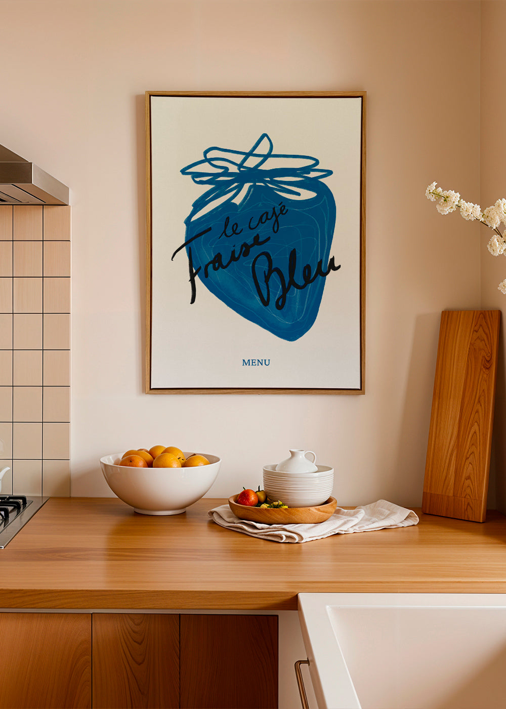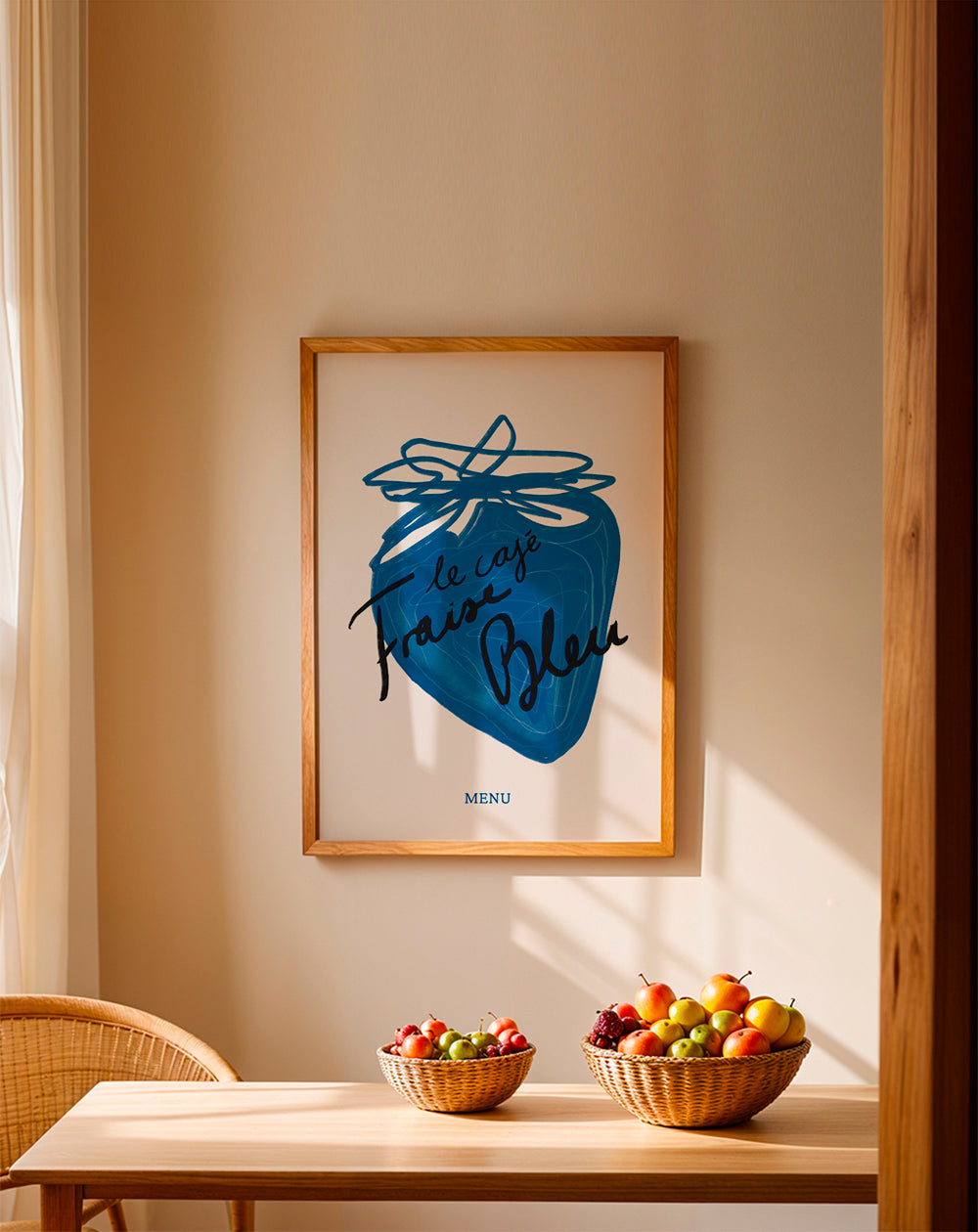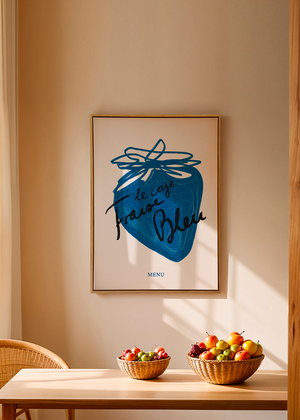 A print from our repertoire of food posters, by the artist 1x, with shades of blue, and with vertical layout. Nordic-style prints and Scandinavian decoration are a match made in heaven. This is the print your wall has been looking for.