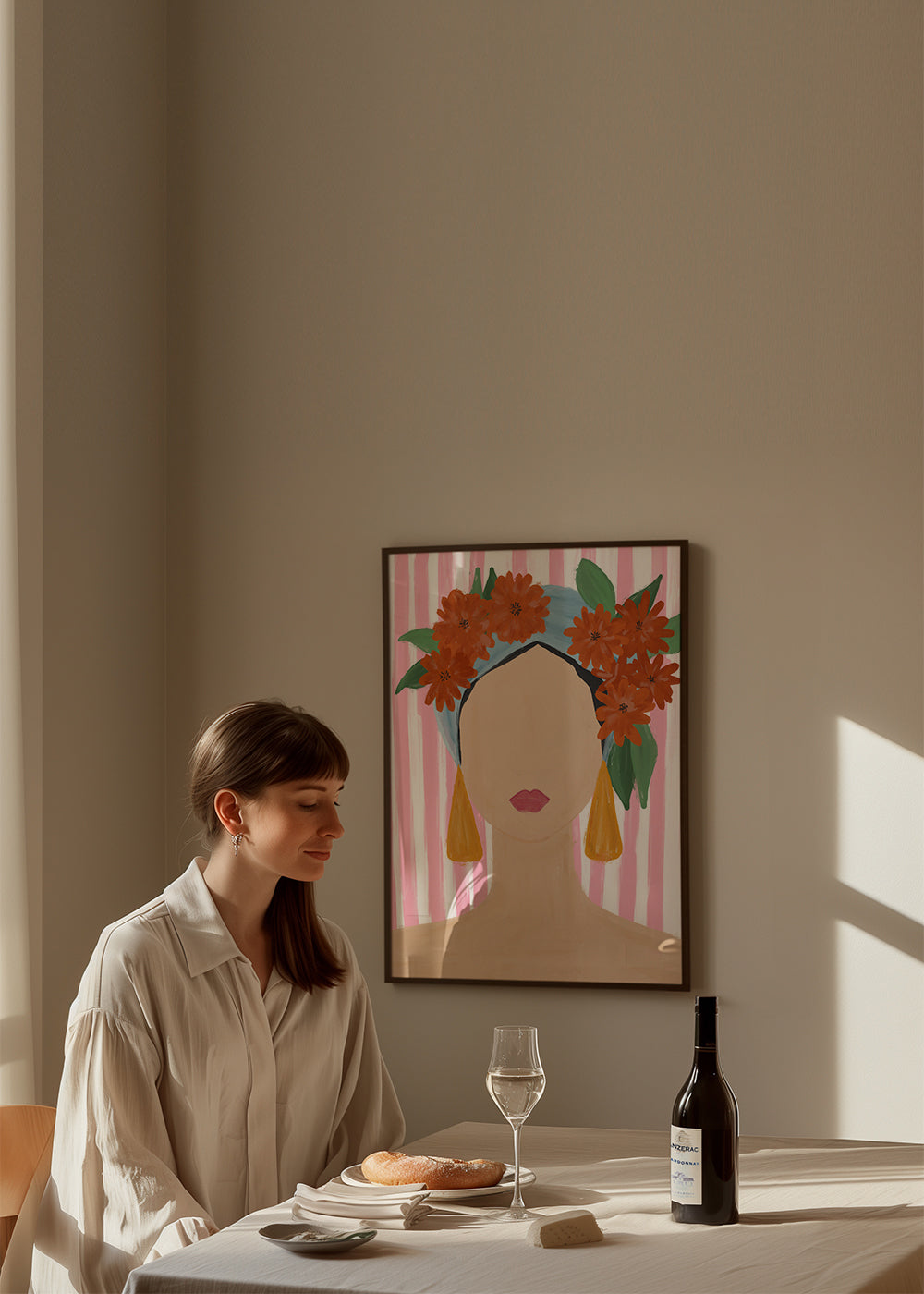 A print from our girls wall art series, an original by Essentially Nomadic, in tones of red, and in vertical position. Illustrated prints give your home decor a touch of originality. Fill your walls with art.