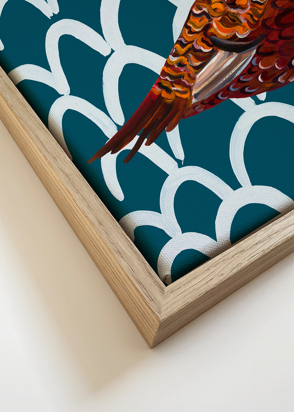 We work with solid wood and aluminum frames. All framed artworks are shipped already assembled and ready to hang. The front protection is high-clarity acrylic glass.