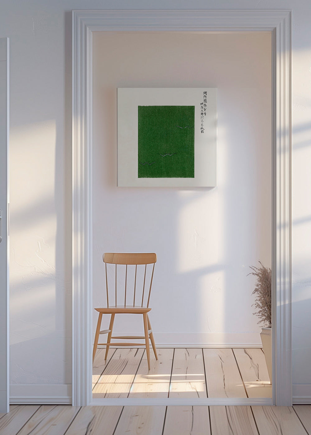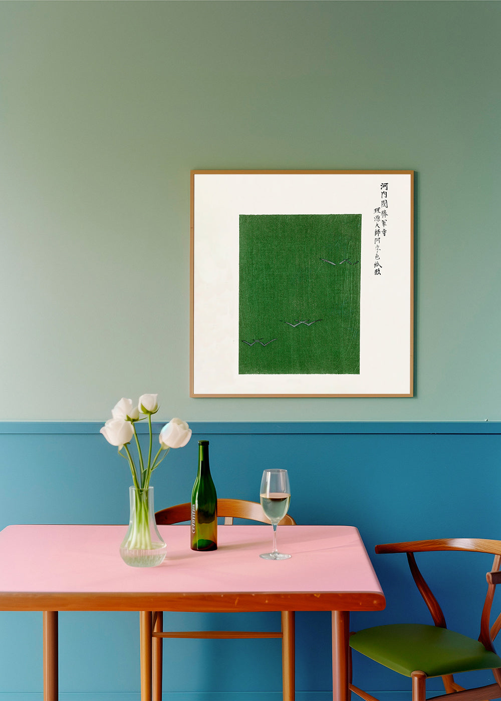 Scandinavian wall art Green Birds Woodblock print from Yatsuo no tsubaki by Taguchi Tomoki - Square