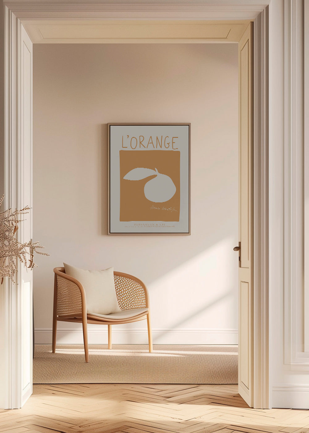 Beautiful piece inspired by the collection of famous painters and artists posters, from the mind of Seven Wall Art, with touches of orange, and perfect to hang vertically. Clean lines and Nordic tone, perfect for Scandinavian decoration. Let your walls tell a story.