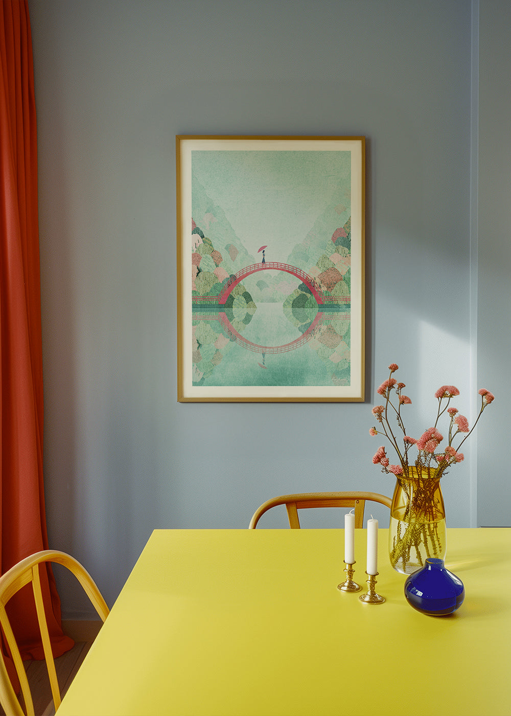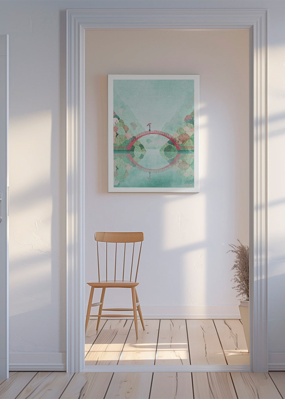 A design in the style of our japanese wall art, made by Henry Rivers, in tones of red, and in vertical position. With the soft lines and shapes that characterise Nordic prints, a perfect piece for simple, functional spaces. It's always a good time to freshen up your home.