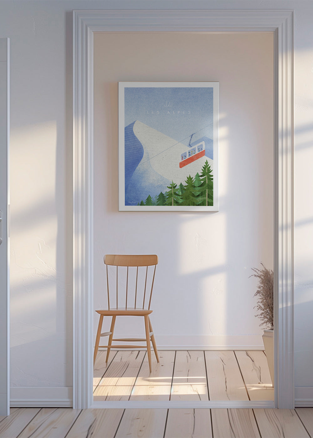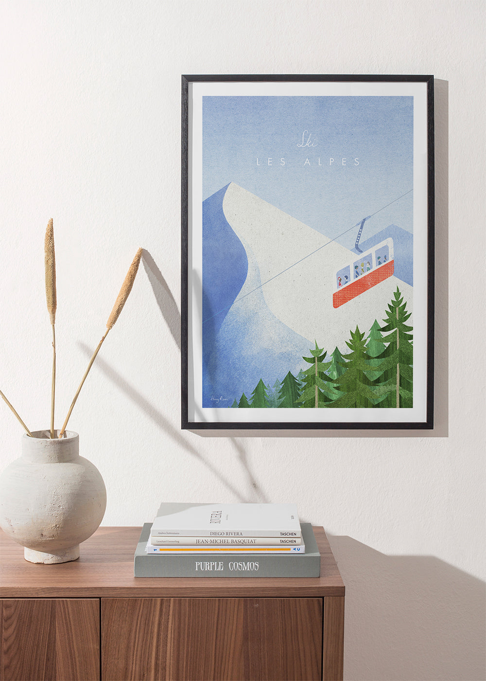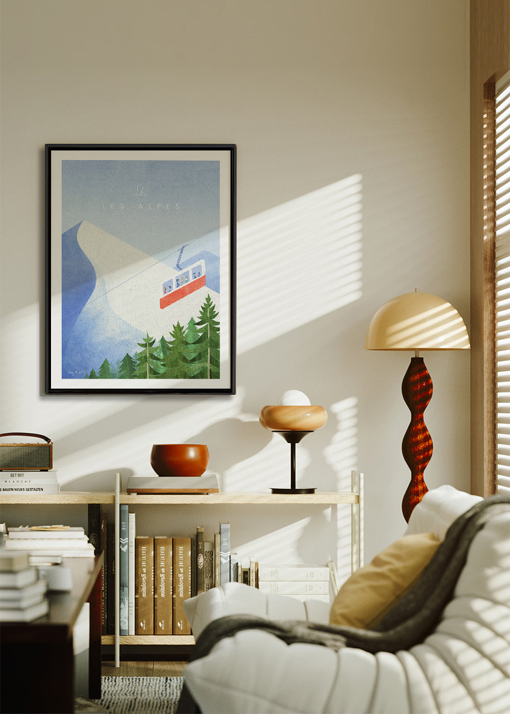 A print from the travel posters category, an original by Henry Rivers, with touches of red, and in vertical position. A beautiful landscape perfect for pairing with other nature prints. Elegant walls for chic homes.