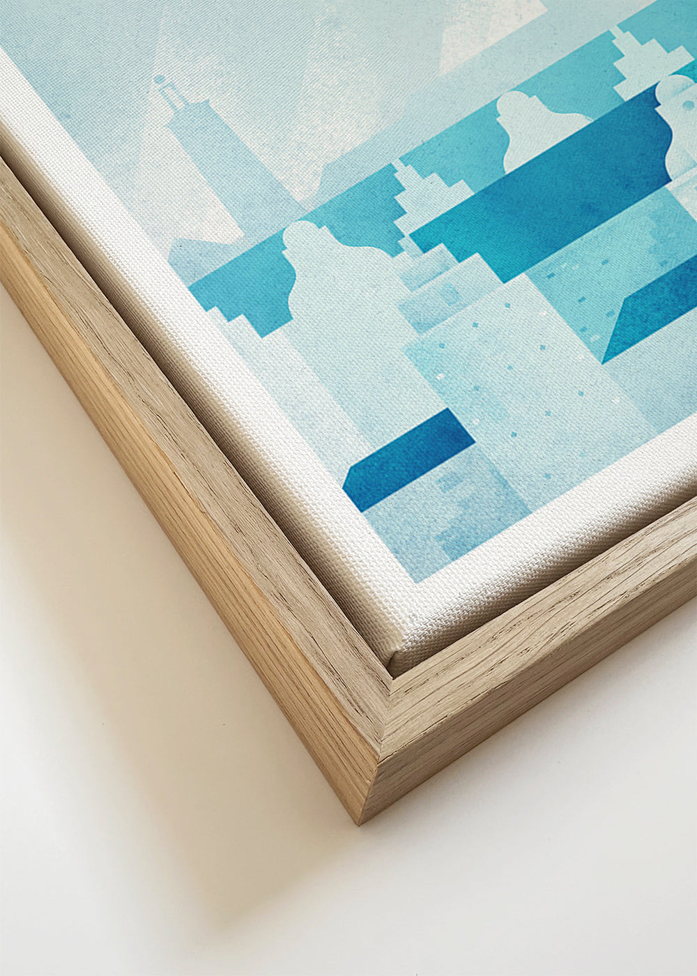 Each canvas is hand-stretched over a wooden frame. The depth is 3 cm for unframed canvases and 4 cm for framed canvases.
