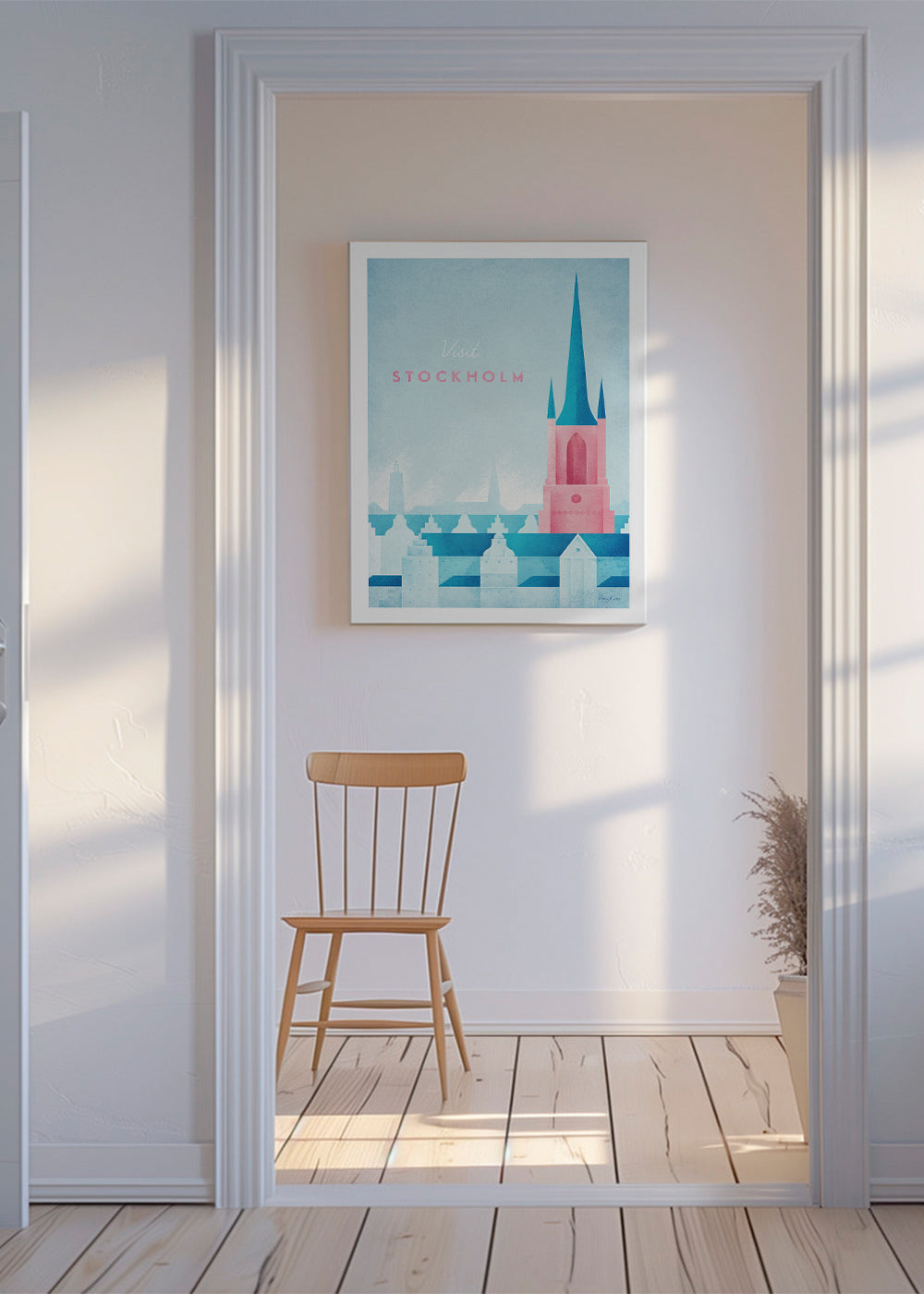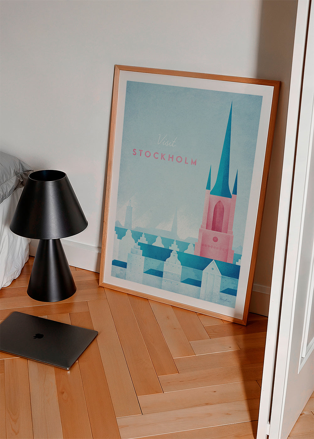 A design from our selection of travel posters, made by Henry Rivers, with shades of blue, and to hang in vertical position. Our map and city prints are perfect for those who love cities and architecture. Elegant walls for chic homes.