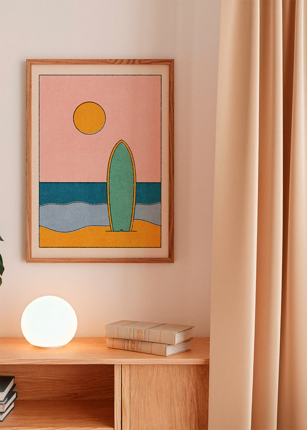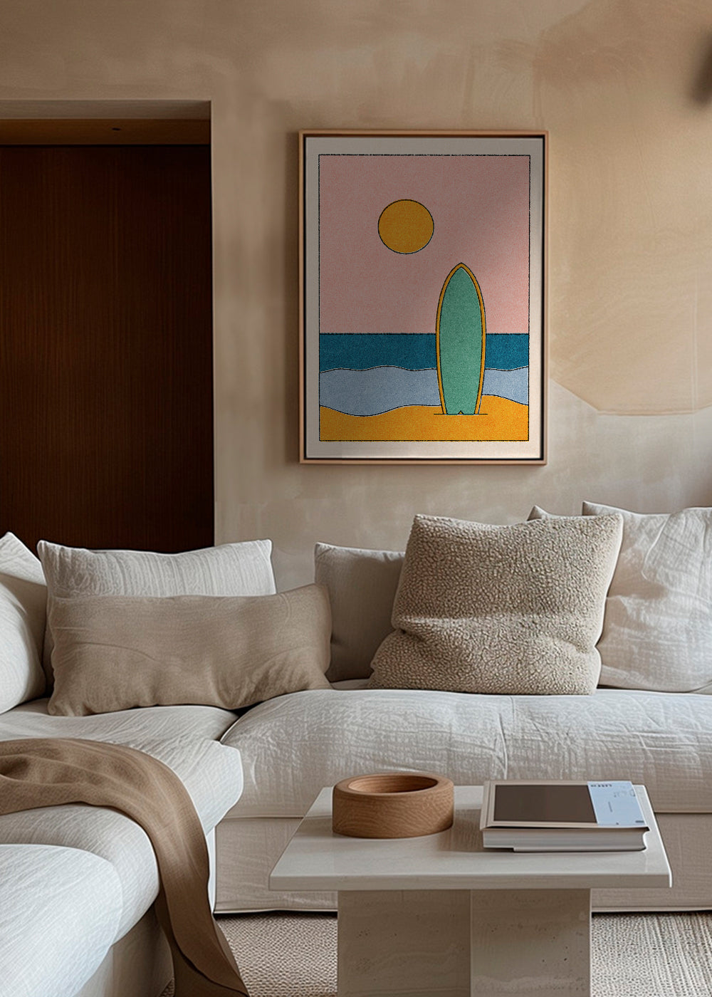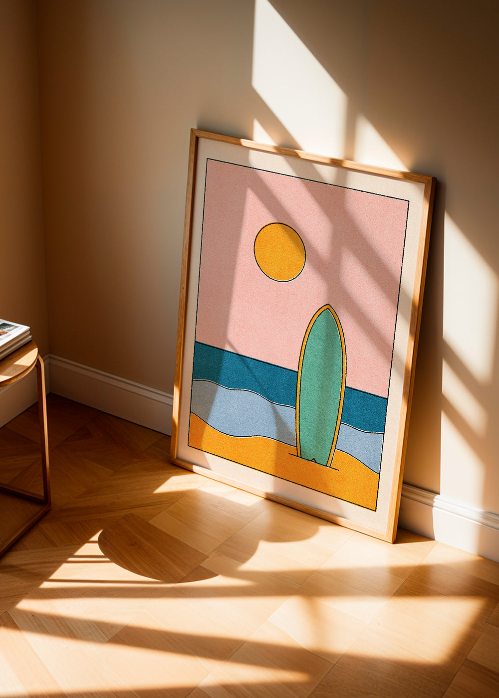 Beautiful design in the style of our surf posters and wall art, created by Daniel Coulmann, with multicolor pigments, and with vertical layout. Illustrated posters are perfect for pairing with minimalist and abstract art. An empty wall is a canvas waiting to be painted.