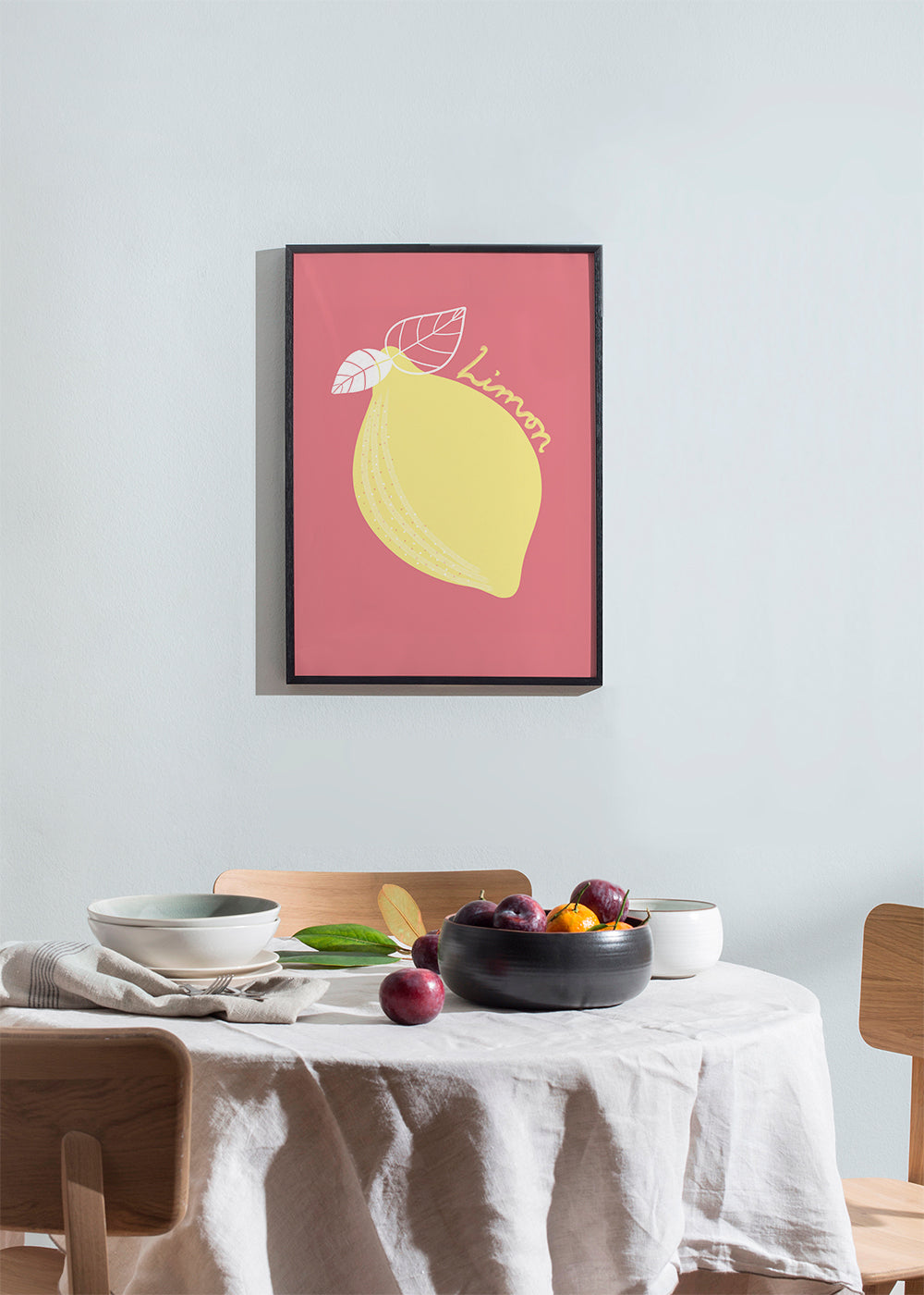 This piece from the fruit posters series, made by 1x, with yellow pigments, and vertical layout. Clean lines and Nordic tone, perfect for Scandinavian decoration. Give your home a new look.