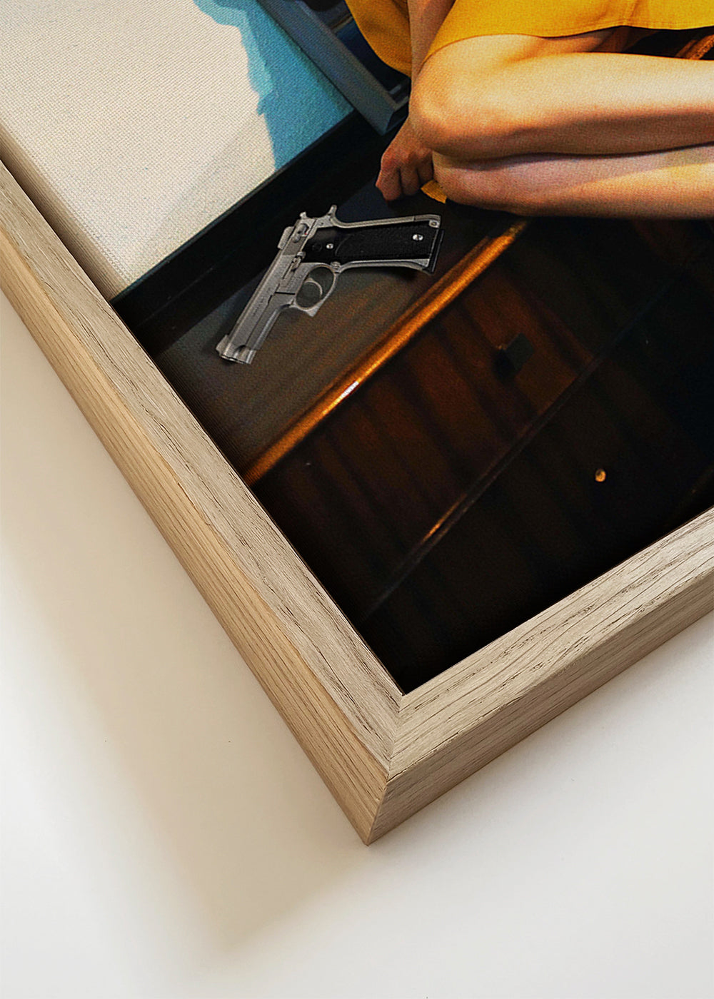 We work with solid wood and aluminum frames. All framed artworks are shipped already assembled and ready to hang. The front protection is high-clarity acrylic glass.
