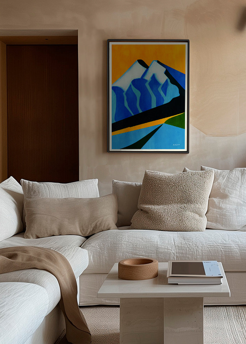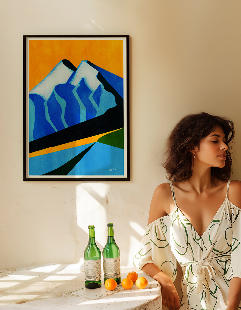 A design from our vintage wall art series, from the mind of Bo Anderson, with shades of blue, and in vertical position. A retro style that is perfect for a vintage look. Let art flood your home.