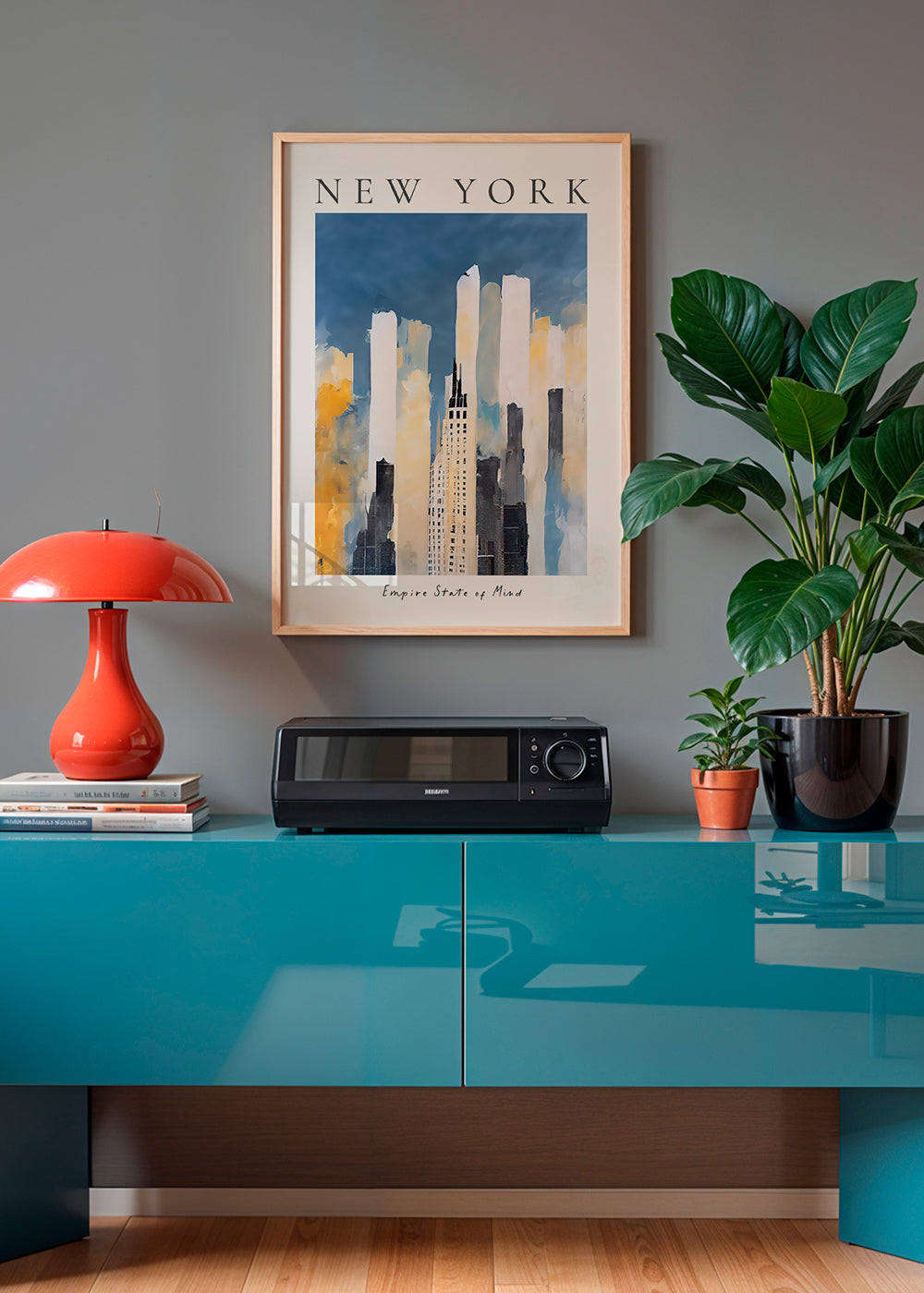 A print from the travel posters series, from the Seven Wall Art collection, with tones of blue, and perfect to hang vertically. A perfect piece for the eternal traveller. Pair it with our map and city prints. Create spots full of art.
