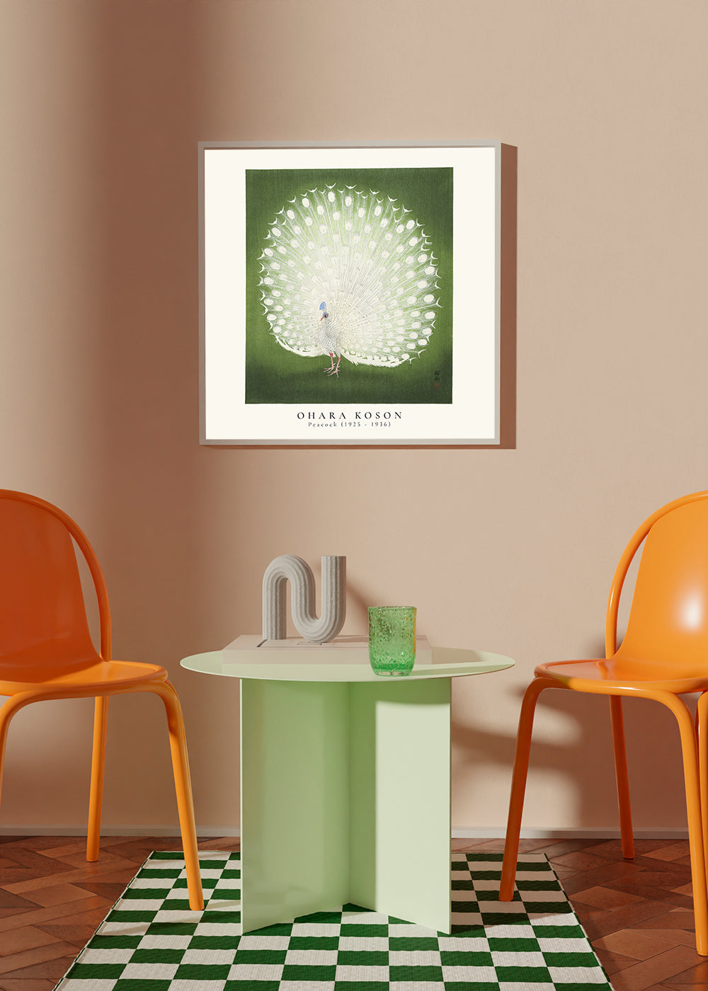 Scandinavian wall art Ohara Koson, Peacock - SQUARE