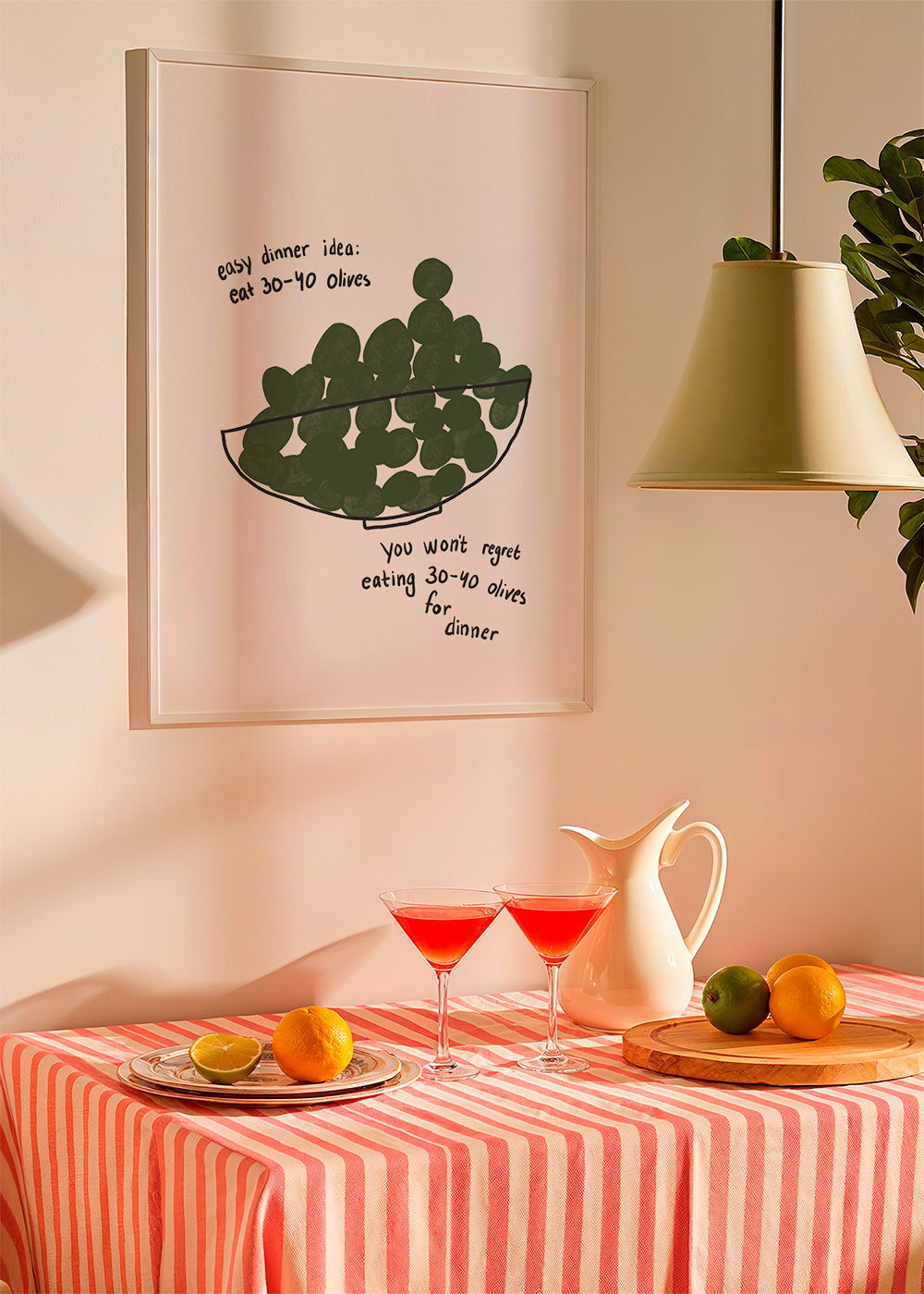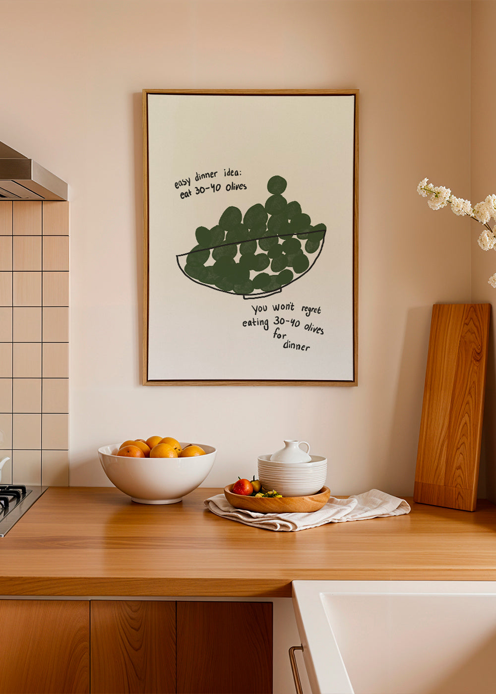 Scandinavian wall art Olives for Dinner - Athene Fritsch