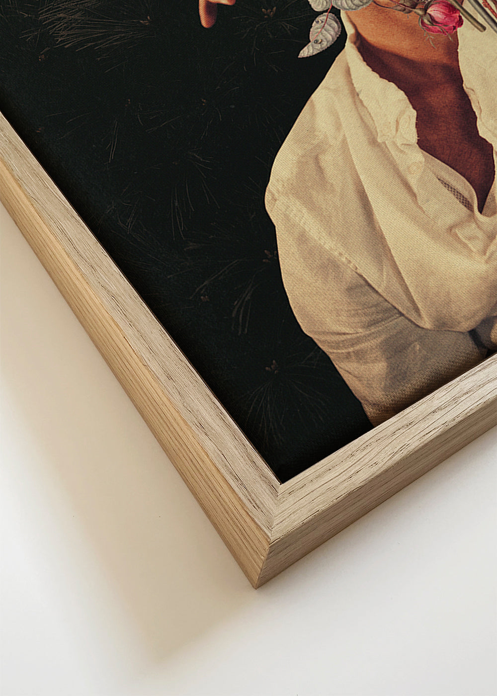 If you select the passepartout option, we will add the white matt board to the frame, and we will reduce the design of the work. For example, if you select a print size 20x28 in, with an oak colored frame and passepartout, we will reduce the design of the print to the previous size (16x20 in). In this way, it will adapt perfectly to the inside window of the passepartout.