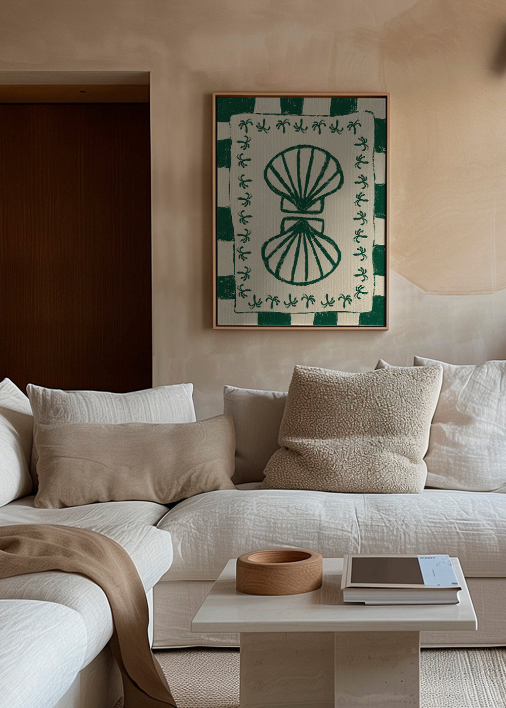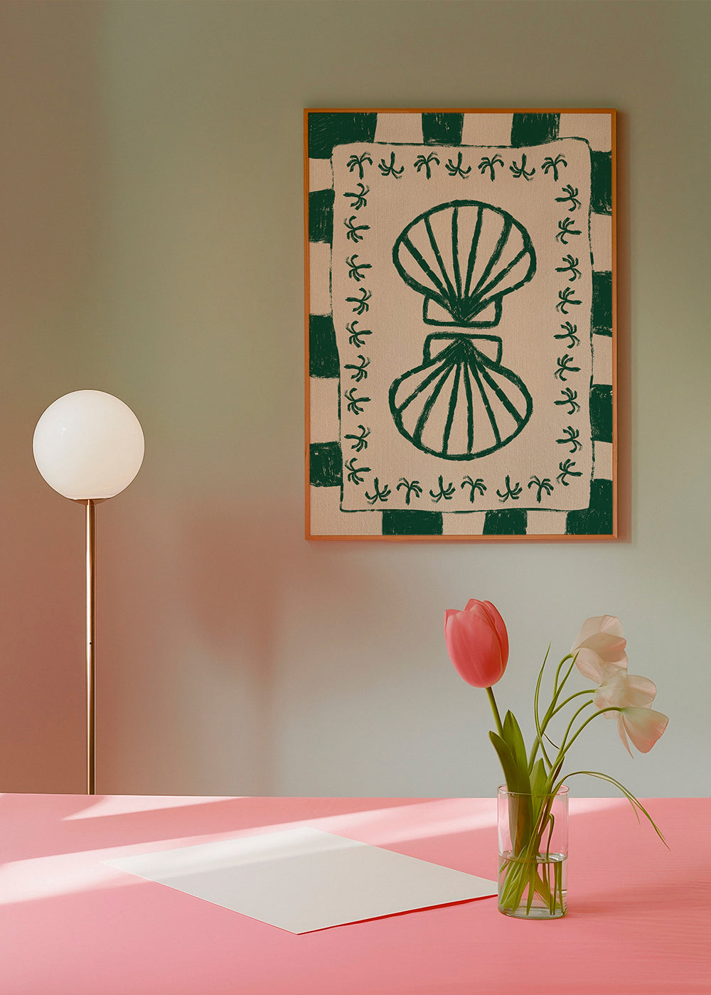 A print from our ocean wall art and prints collection, by creative artist Shatha Dafai, with green pigments, and in vertical position. Illustrated posters are the perfect way to fill your walls with creativity. It's always a good time to freshen up your home.