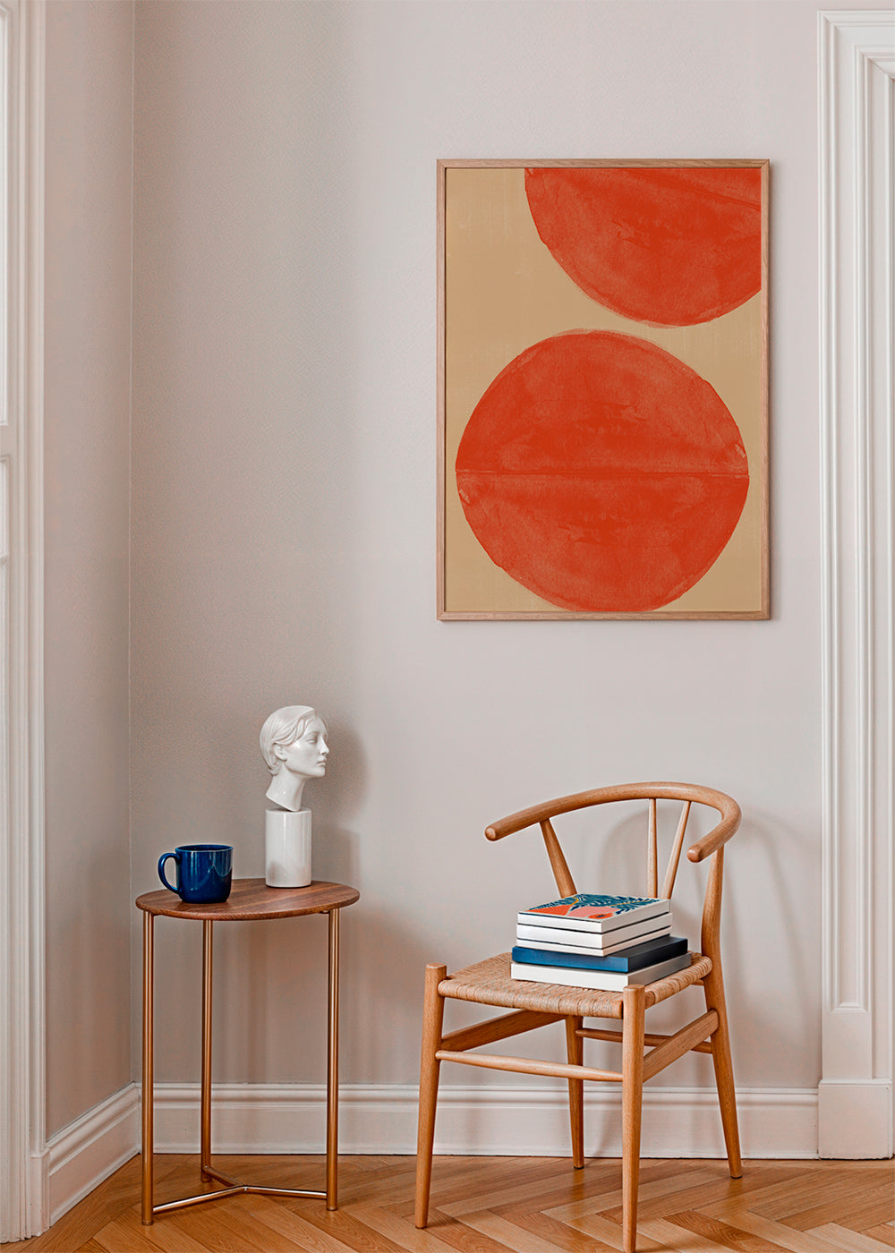 Beautiful poster inspired by the collection of geometric wall art and prints, in tones of red, and with vertical layout. Geometric art is an elegant style to decorate the walls of your home with. Pure art and design.