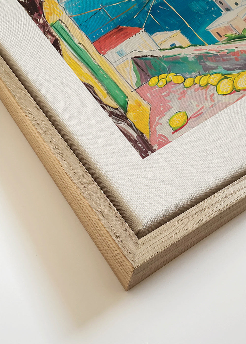 The wooden frames up to 20x28 in (included) have a width of 0.6 in and a depth of 1.2 in, while in the larger ones the width is 0.8 in and a depth of 1.2 in.