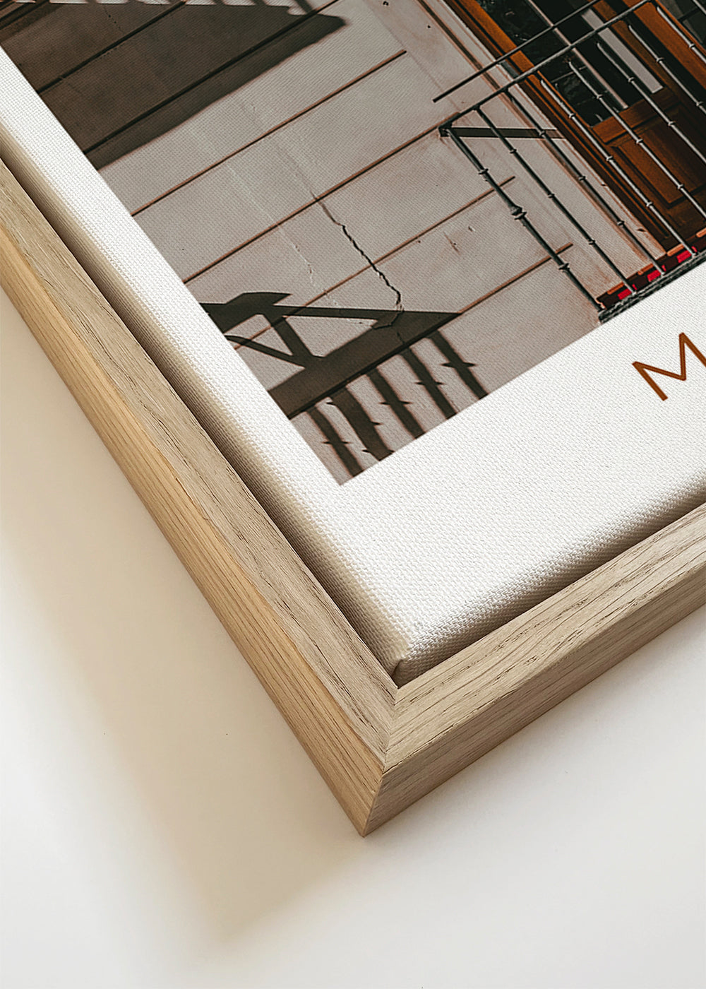 The canvas or photo canvas is a cloth supported by a wooden underframe on which our works of art are printed. Our modern canvas uses the highest quality fabric and pine wood for the 1.4 in deep underframe.