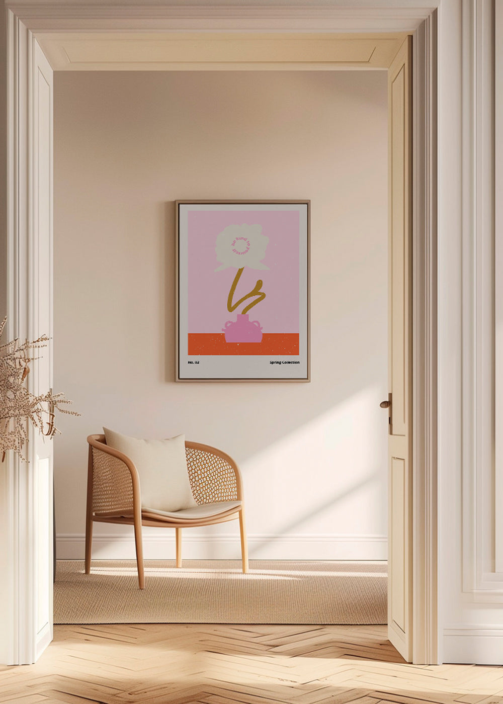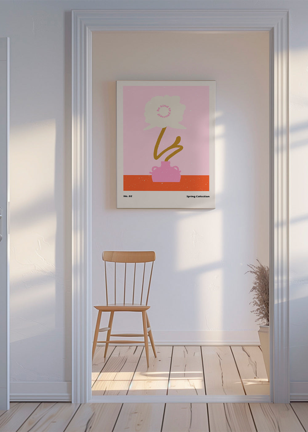 A poster from our botanical prints and wall art series, with tones of pink, and perfect to hang vertically. A perfect piece for spaces bursting with art and creativity. Our drawings are perfect for decorating empty or boring spaces. Elegant walls for chic homes.