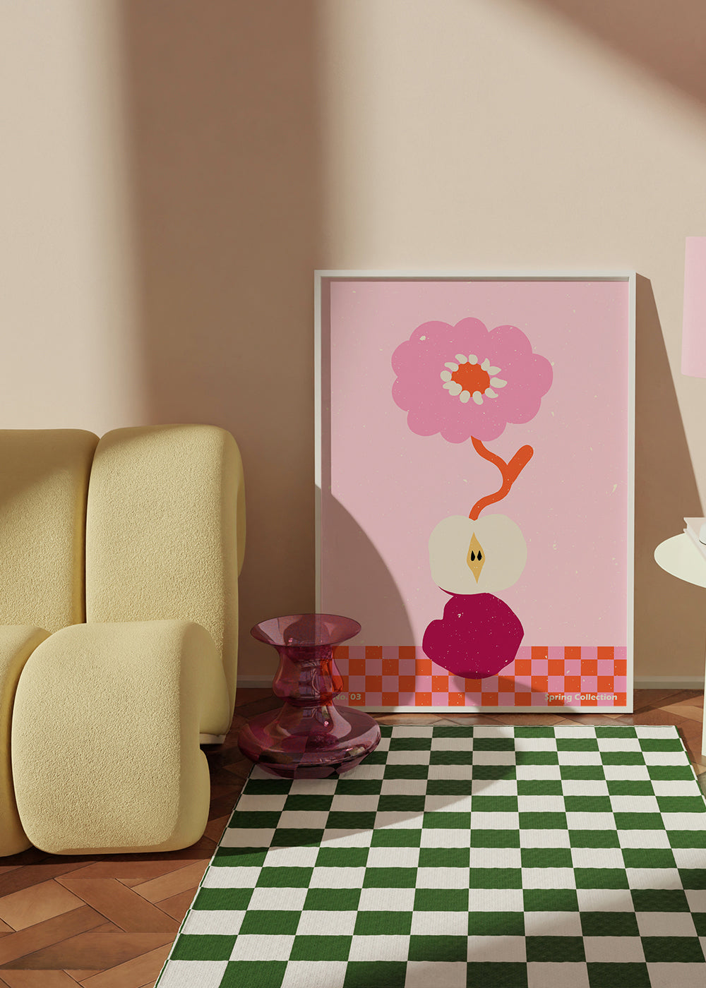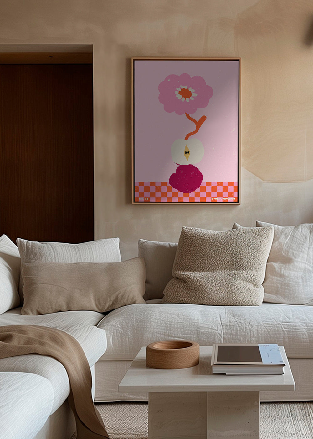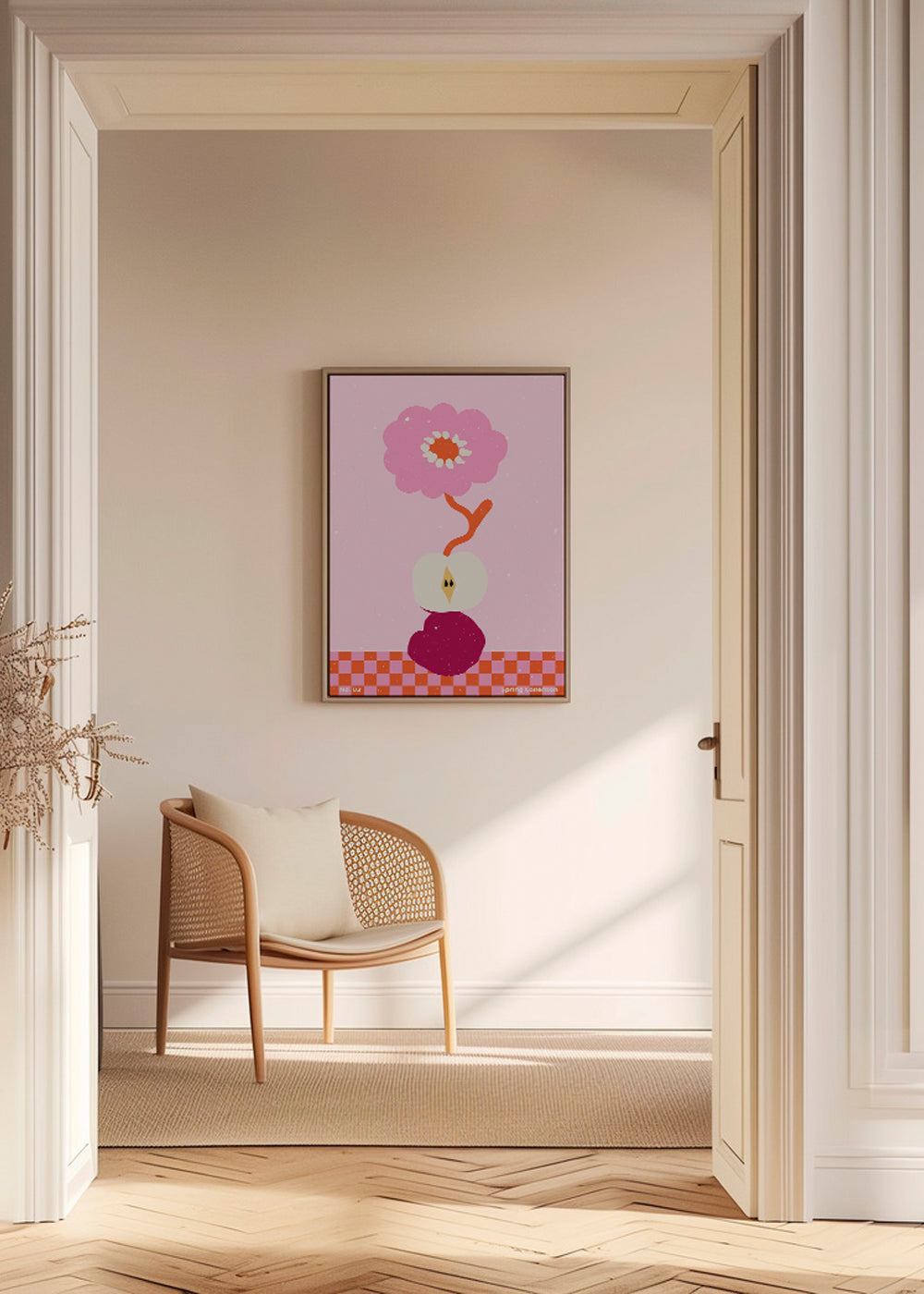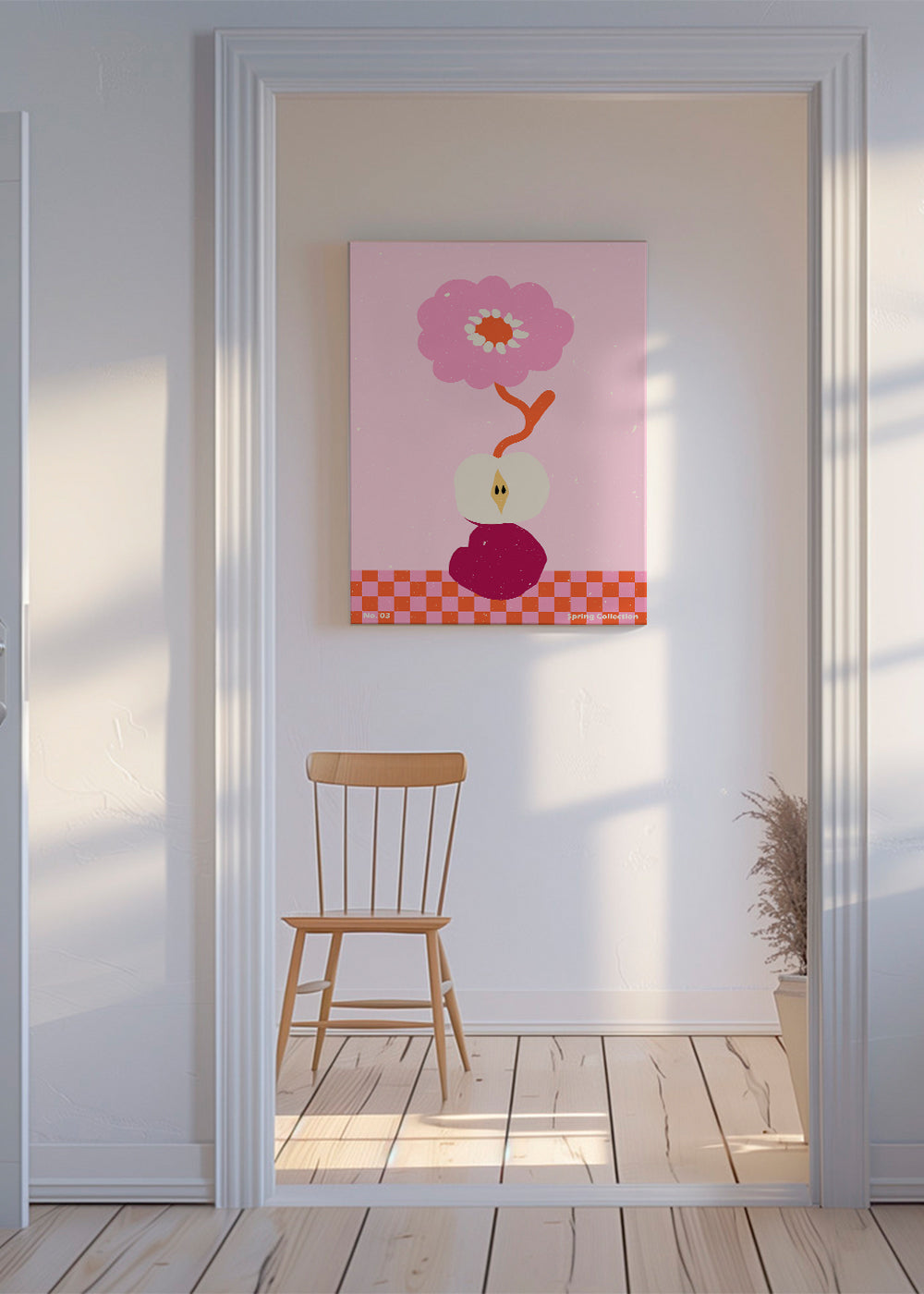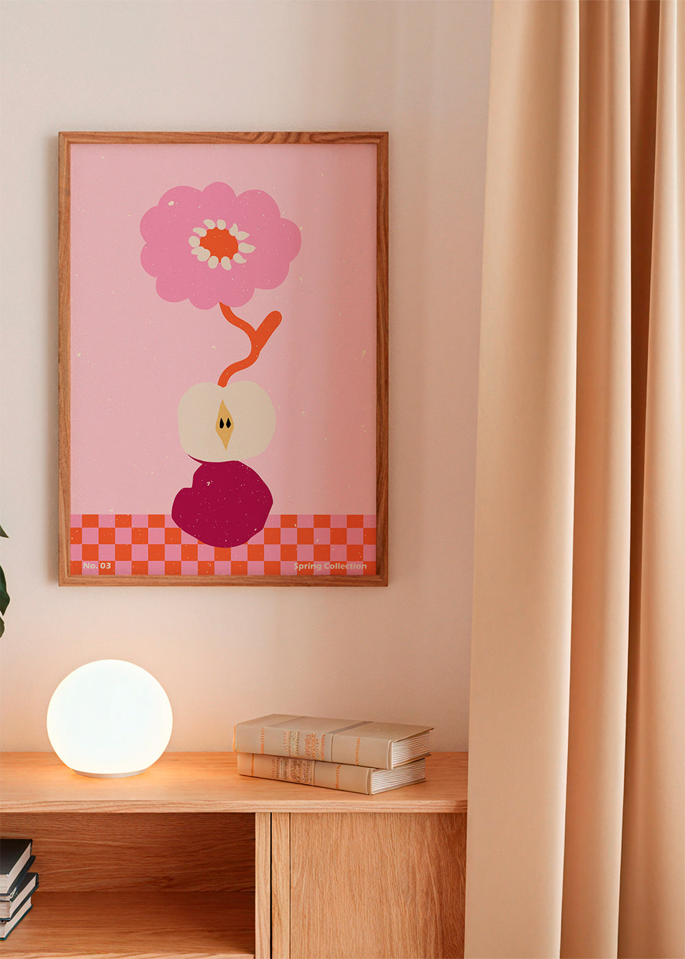 A poster from our botanical prints and wall art series, in tones of pink, and vertical layout. A perfect piece for spaces bursting with art and creativity. Our drawings are perfect for decorating empty or boring spaces. Walls decorated with prints are the ultimate.