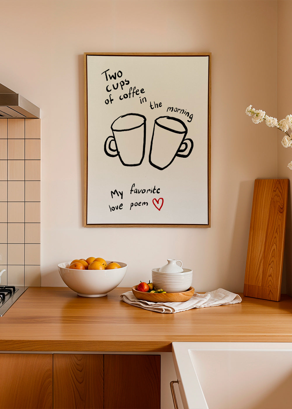 A print from our selection of coffee wall art, by creative artist 1x, with tones of black, and to hang in vertical position. With its Nordic-style design, this print goes perfectly with modern decor. There are no ugly or beautiful walls, just empty or full ones.