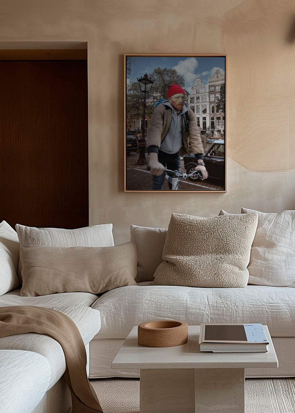 A piece from the bicycle wall art series, from the collection of the artist Dikhotomy, with tones of red, and facing vertically. Combine skylines, photos and city maps to create a composition for those with wanderlust. Build a home full of design and creativity.