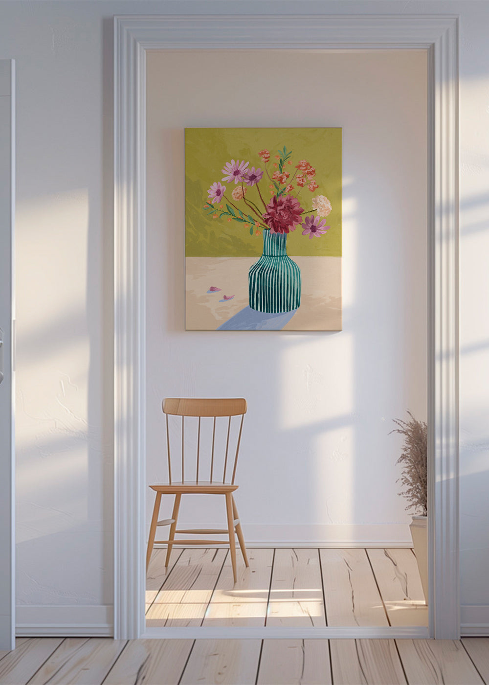 Each canvas is hand-stretched over a wooden frame. The depth is 3 cm for unframed canvases and 4 cm for framed canvases.