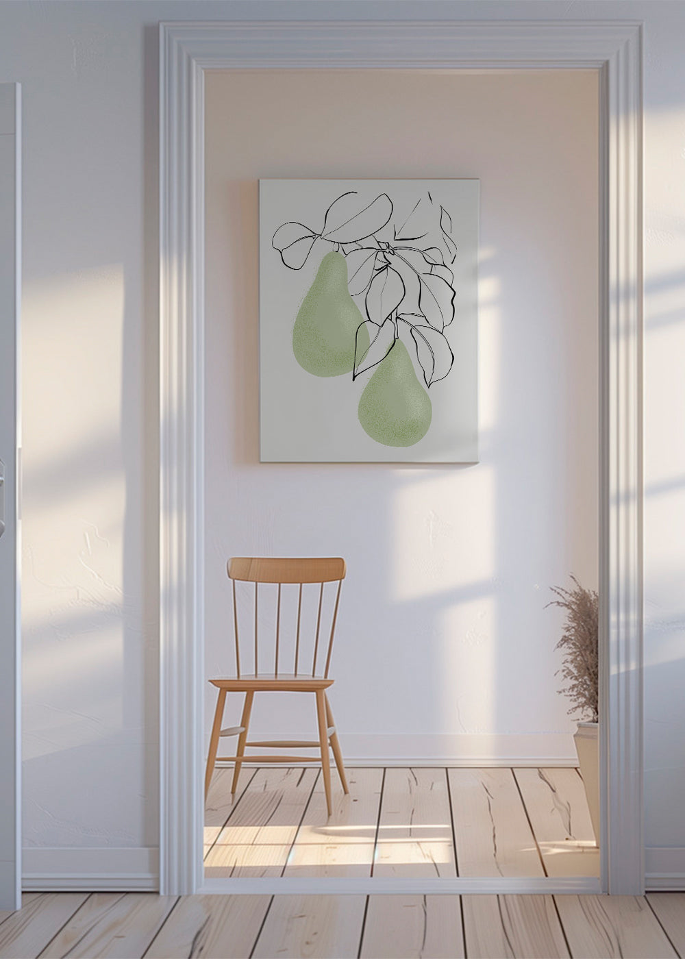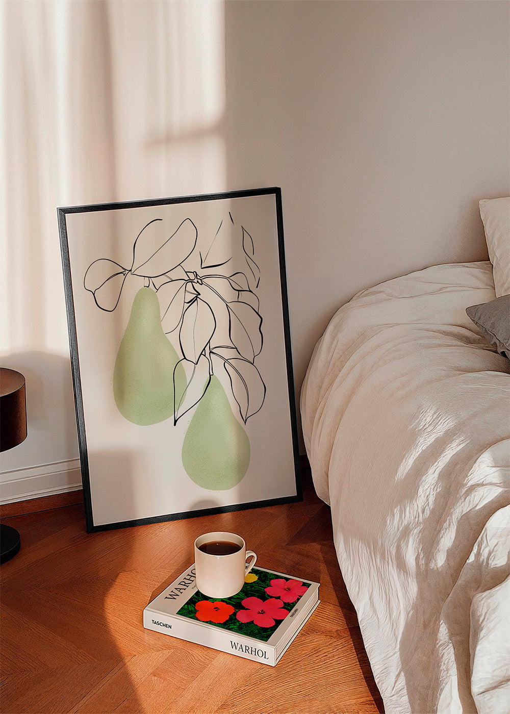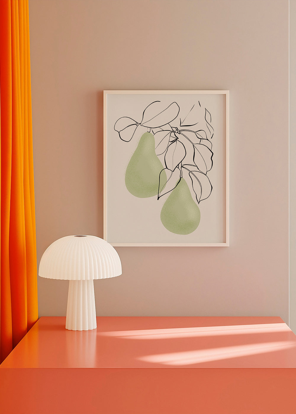 This piece from our repertoire of fruit posters, created by Blursbyai, with tones of green, and vertical layout. Illustrated prints give your home decor a touch of originality. A wall of posters can change the look of a room.