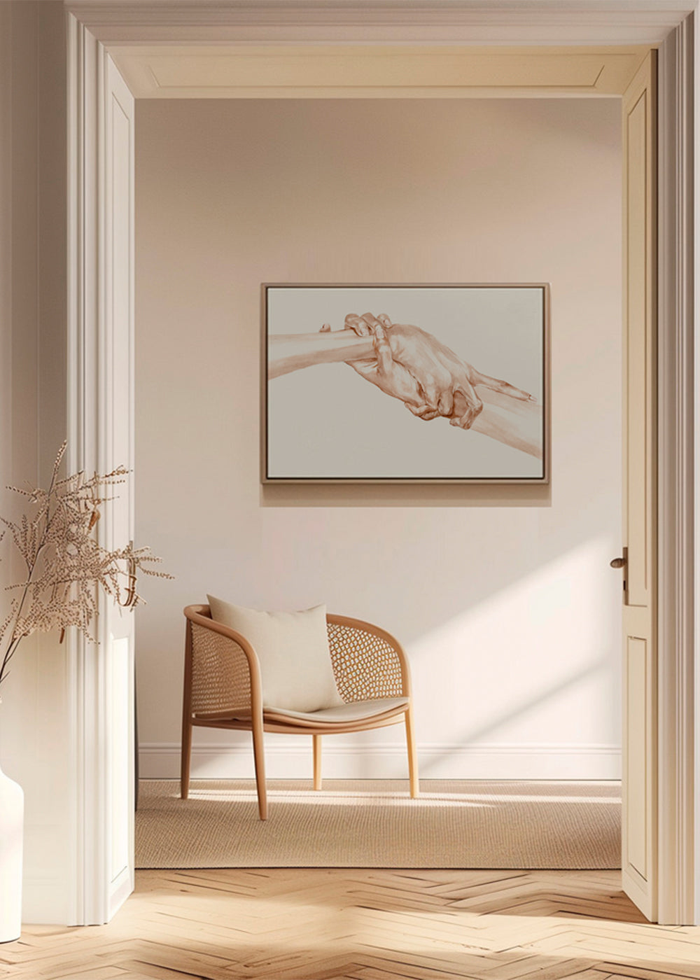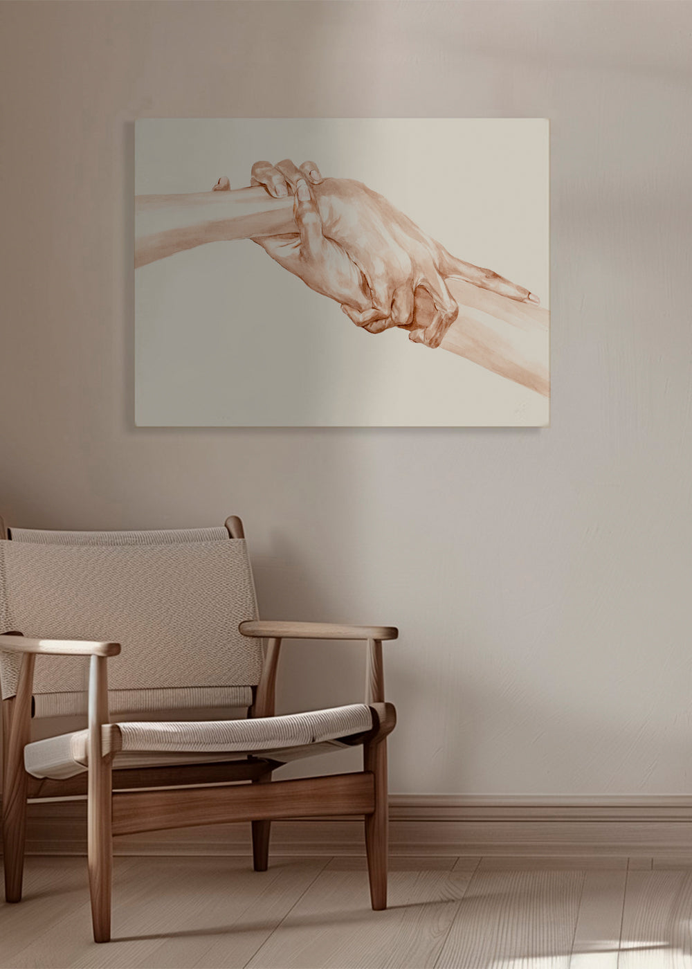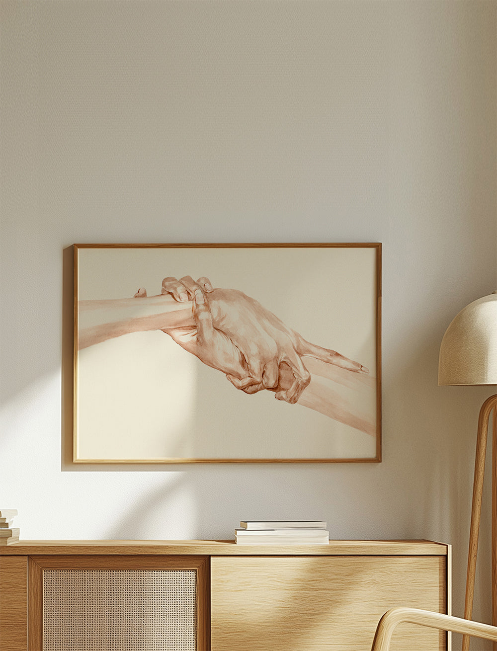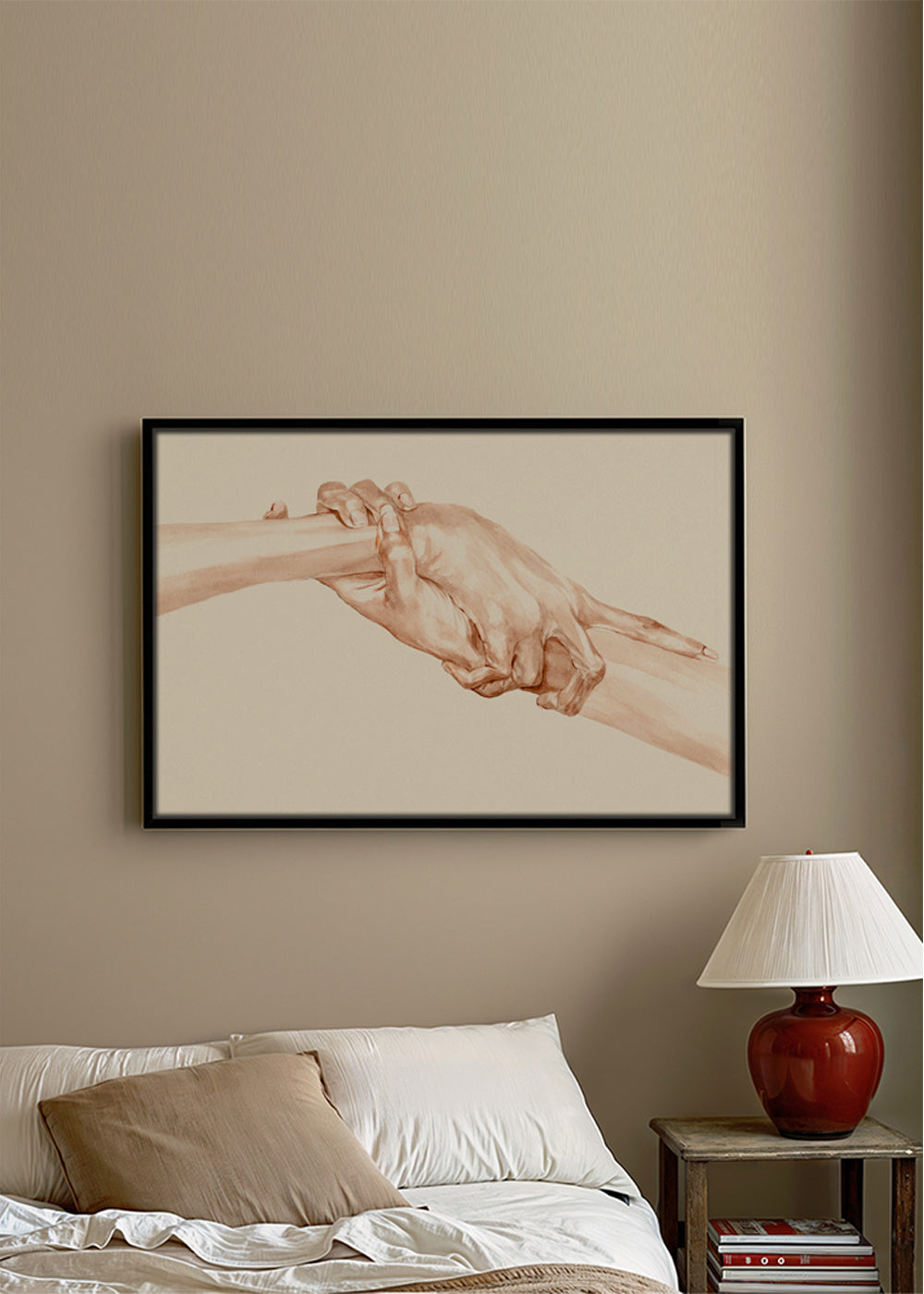 A piece from our hands posters collection, by Sophia Novosel, with touches of brown, and to hang in horizontal position. The tranquillity and freedom of landscape prints is one of a kind. Play around with different combinations of our pieces to get the look you want.