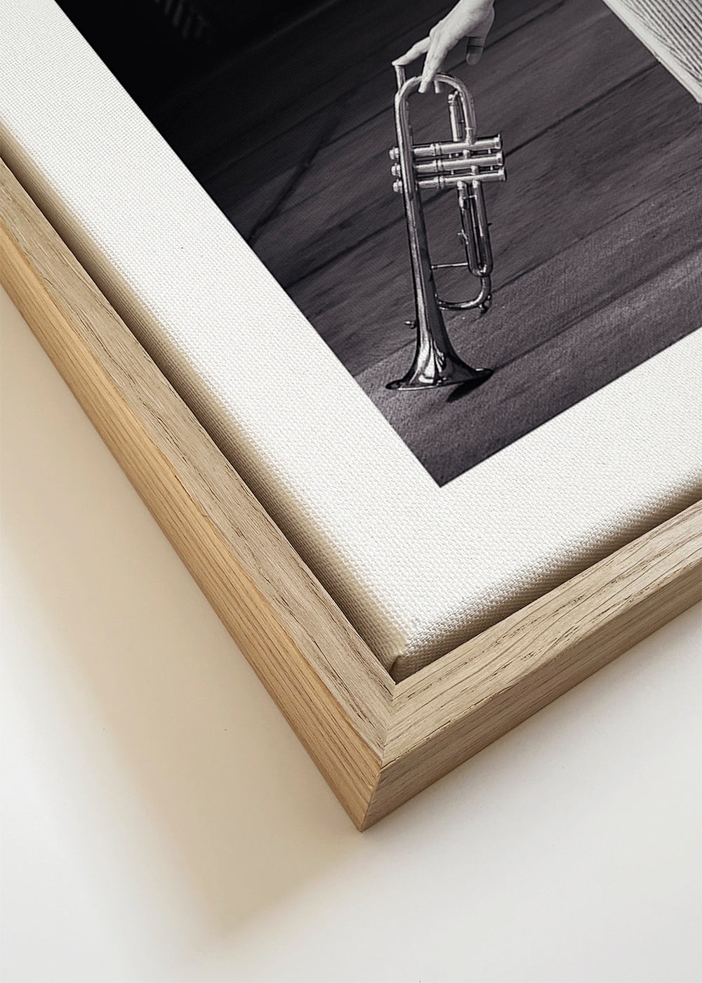 If you select the passepartout option, we will add the white matt board to the frame, and we will reduce the design of the work. For example, if you select a print size 20x28 in, with an oak colored frame and passepartout, we will reduce the design of the print to the previous size (16x20 in). In this way, it will adapt perfectly to the inside window of the passepartout.