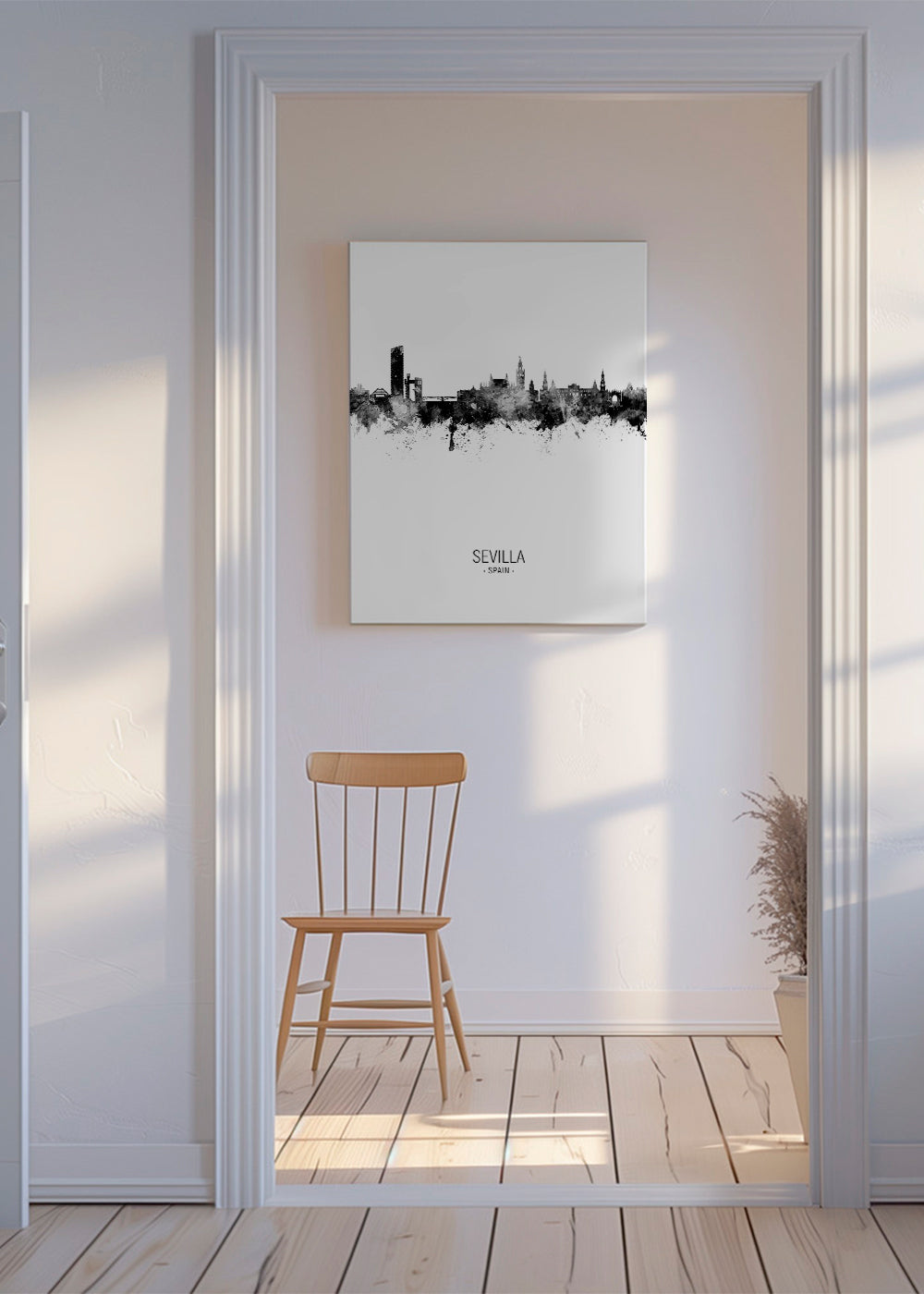 This piece from our repertoire of skylines canvas, by Michael Tompsett, with black and white tones, and in vertical position. Combine skylines, photos and city maps to create a composition for those with wanderlust. Give your home a new look.