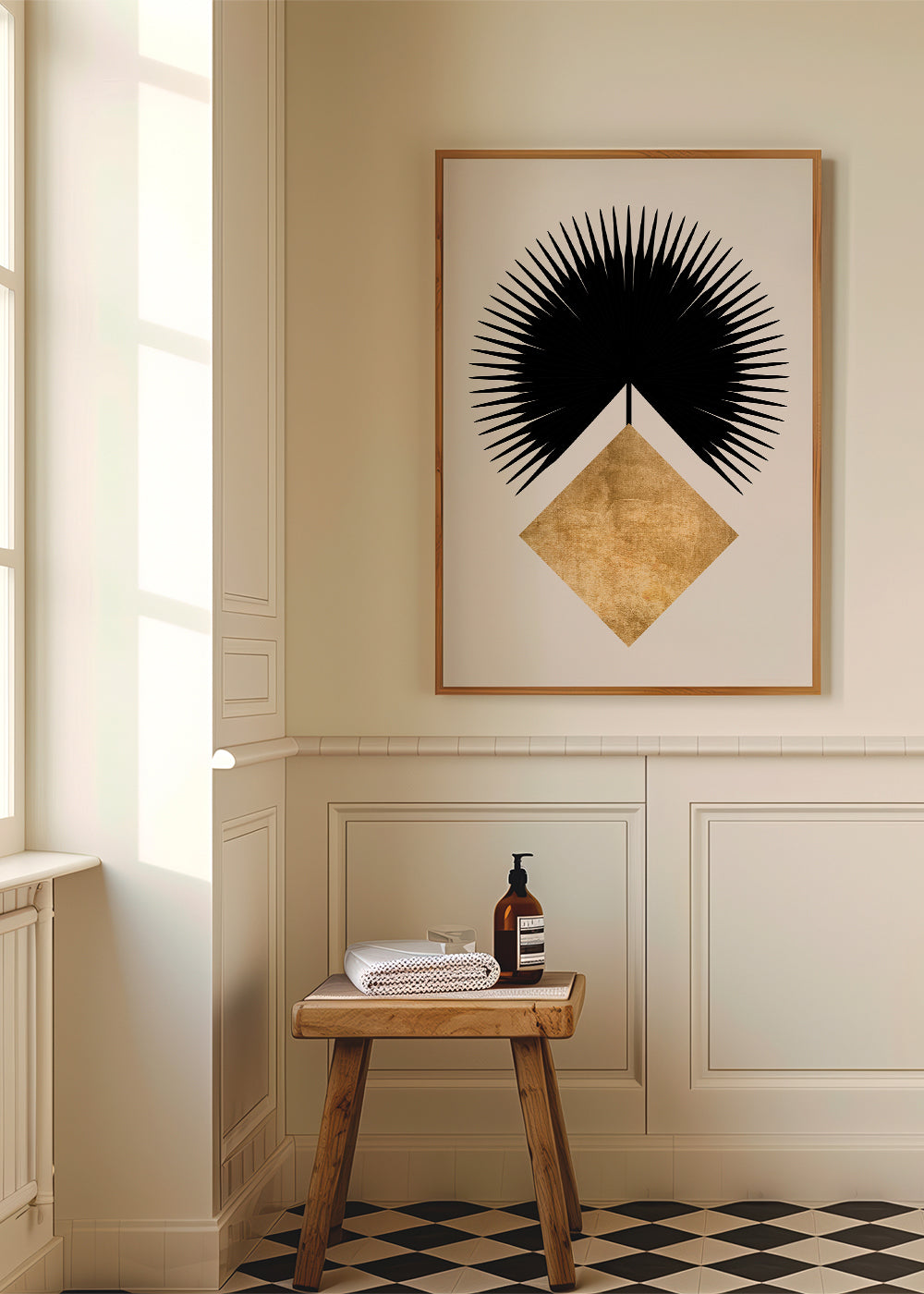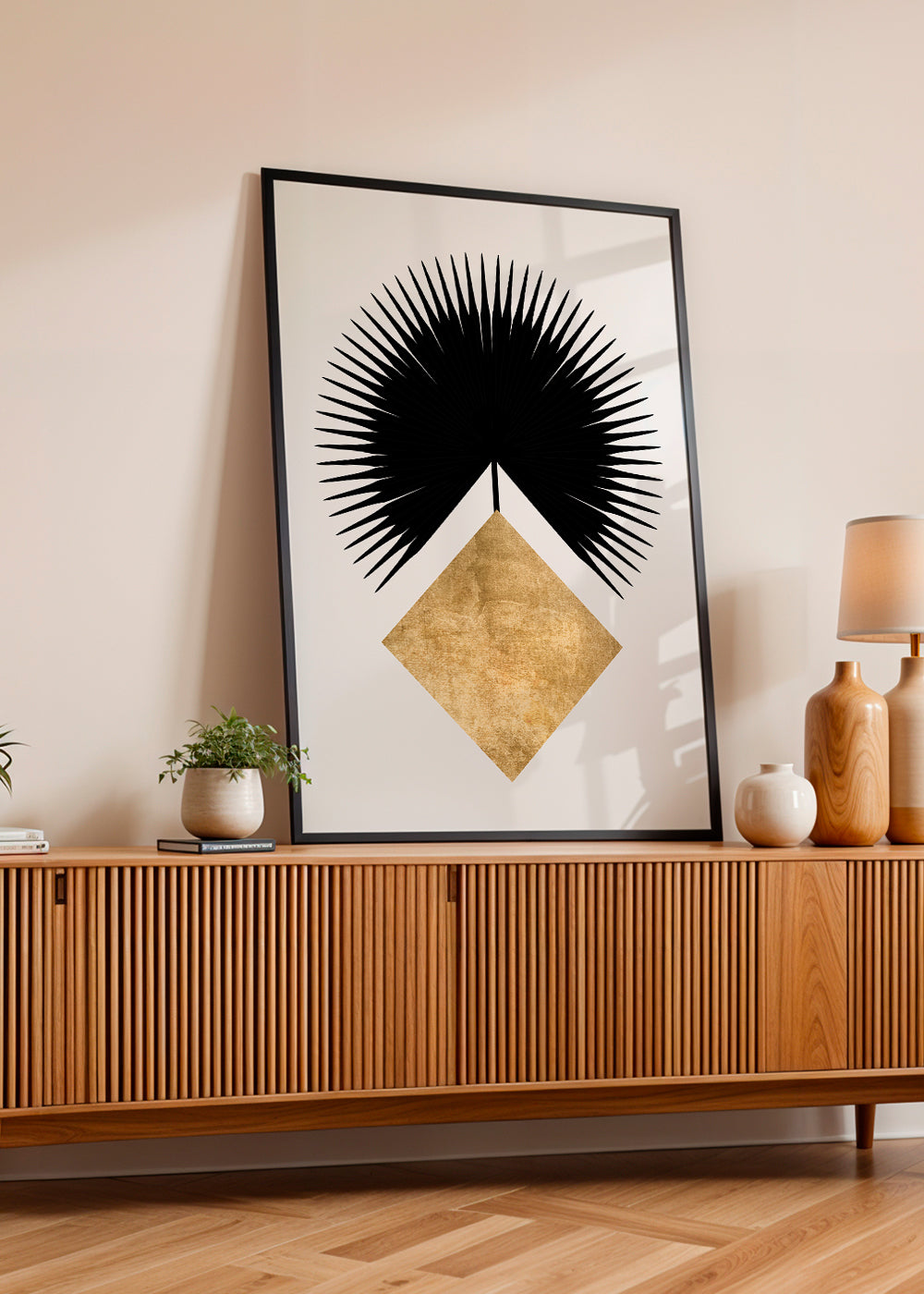 This print inspired by the collection of geometric wall art and prints, from the Kubistika collection, with tones of gold, and to hang in vertical position. Geometric prints are a great option for decorating modern, cutting-edge spaces. Make your house a stylish home.