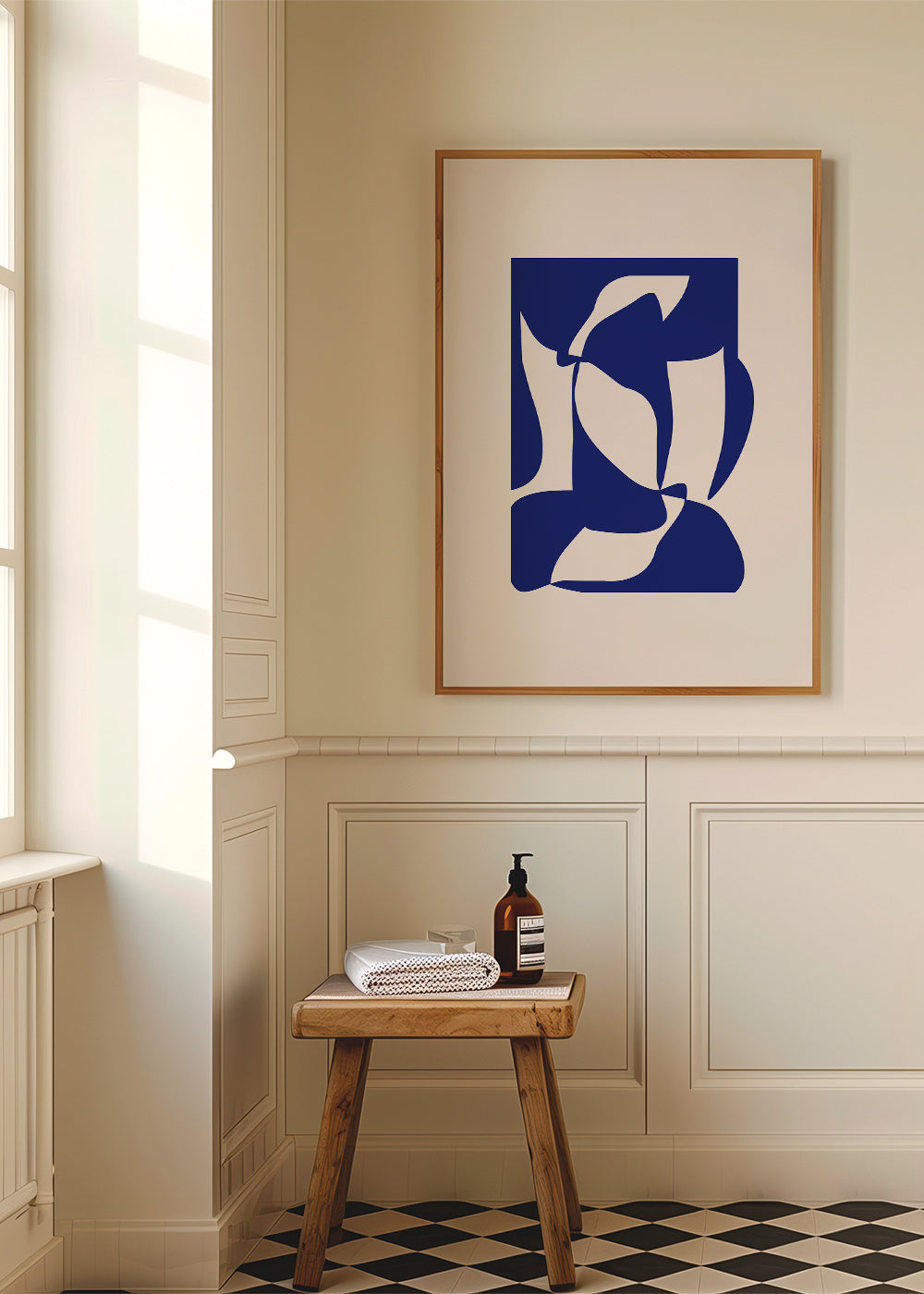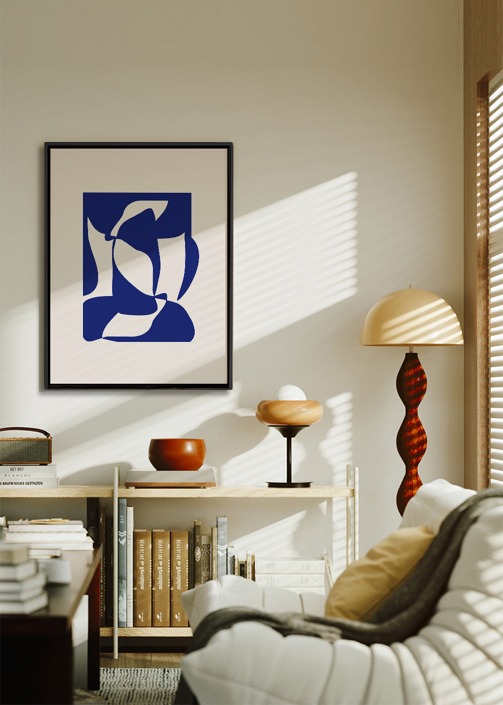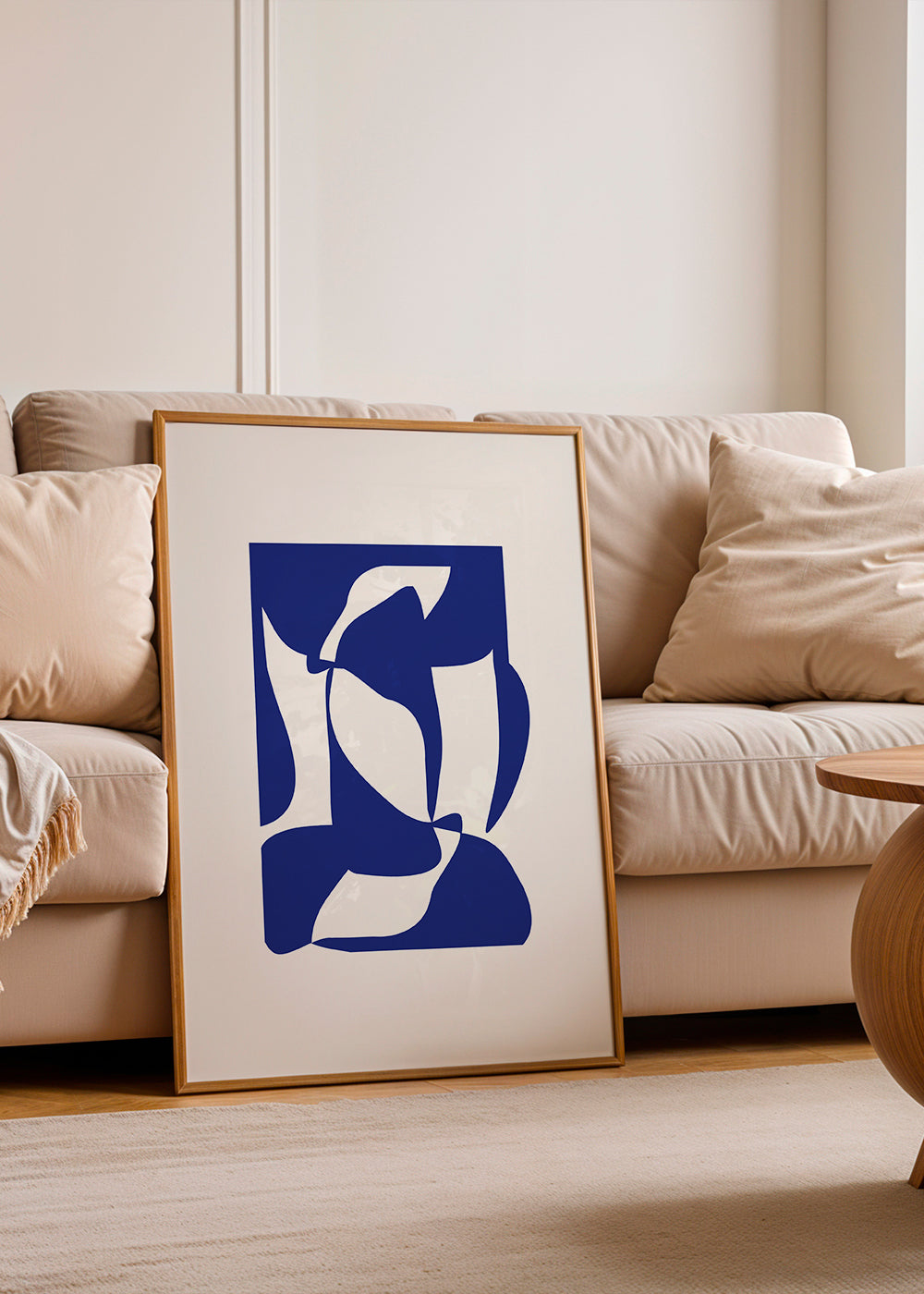 A print from our abstract wall art and prints series, by creative artist Anna Mainz, with blue, and with vertical layout. Abstract art awakens our minds and makes us reflect on the meaning of the pieces. Bring the walls of your home to life.