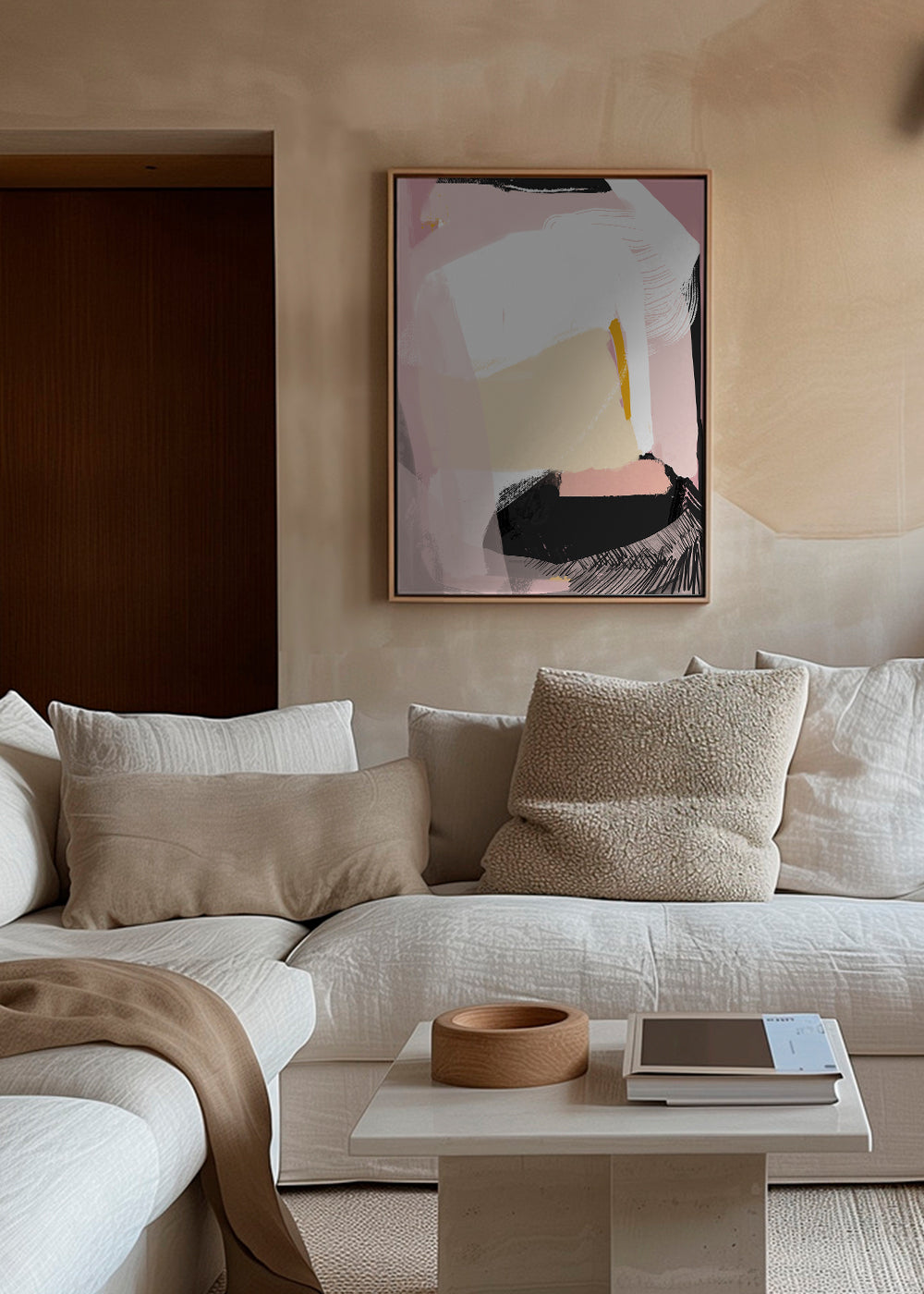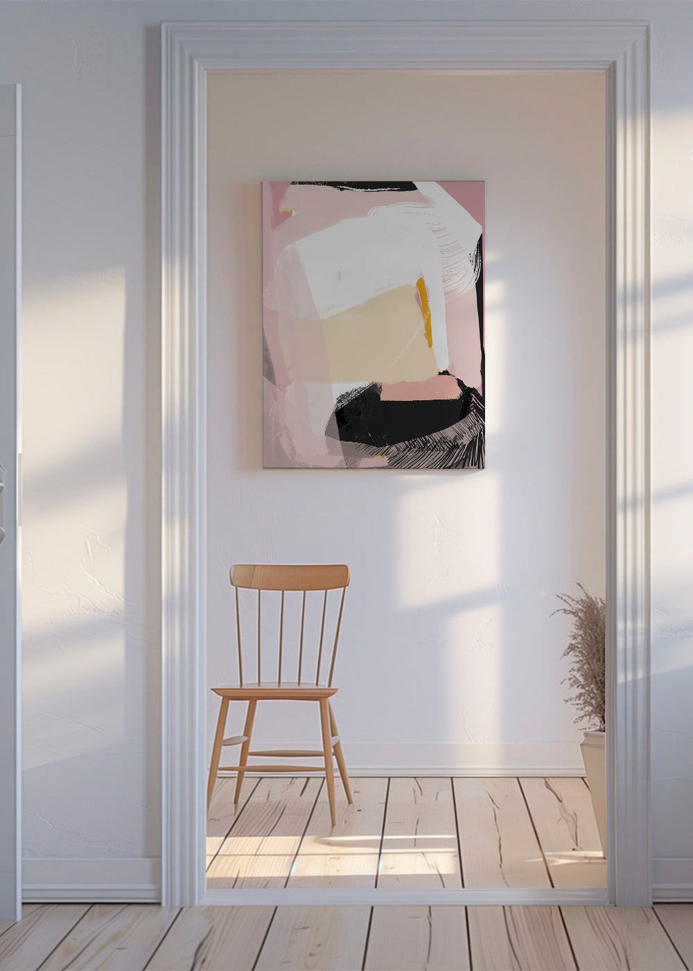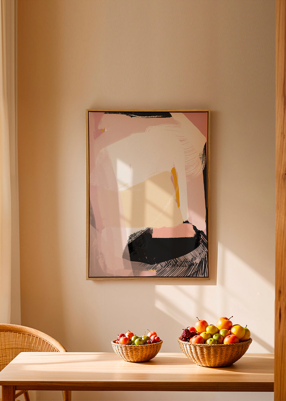 A poster from the abstract wall art and prints series, by Jilli Darling, with shades of pink, and to hang in vertical position. Abstract art awakens our minds and makes us reflect on the meaning of the pieces. The print your wall has been looking for.