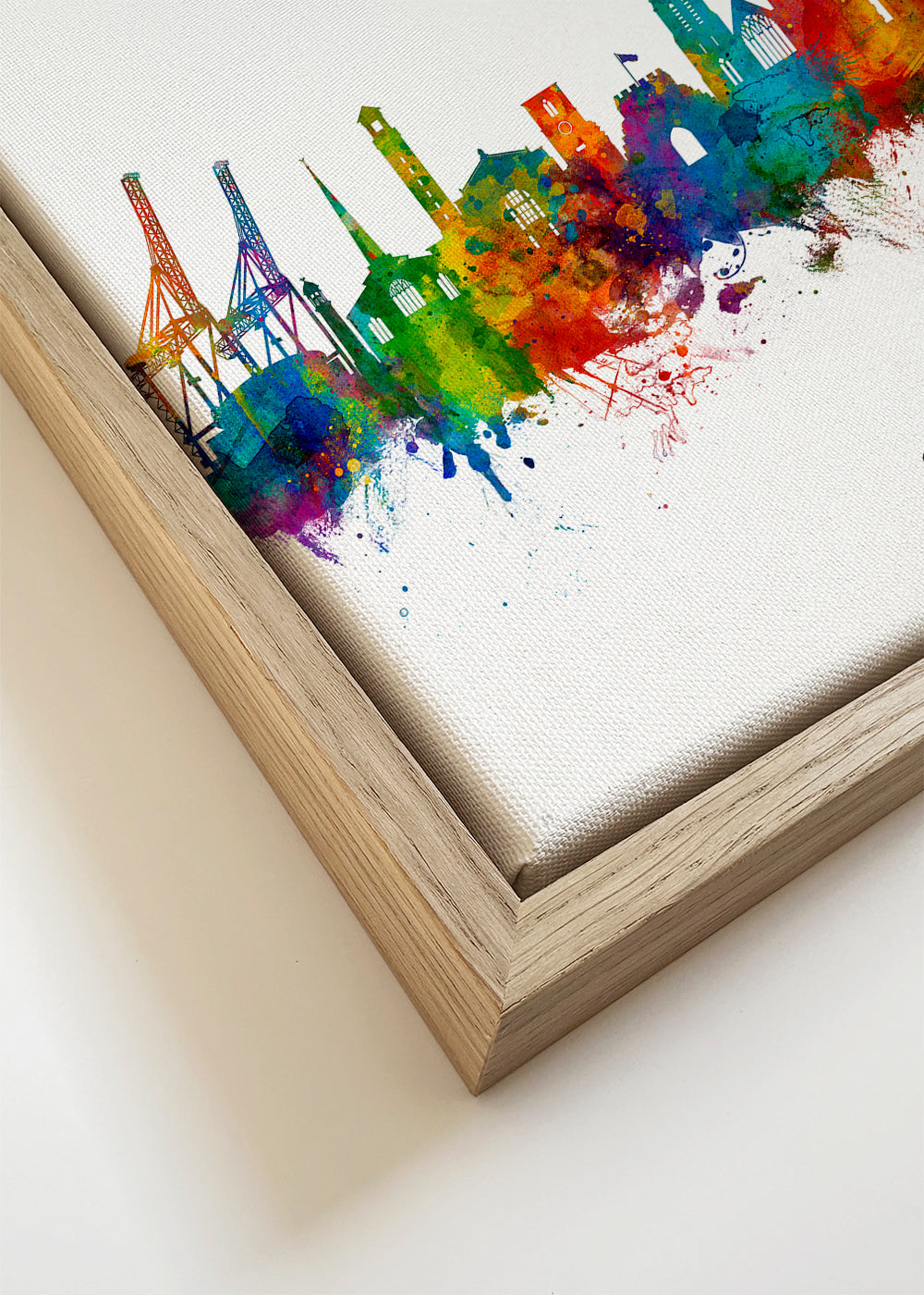 Beautiful piece from our skylines canvas series, from the collection of the artist Michael Tompsett, with tones of multicolor, and horizontal layout. A perfect piece for the eternal traveller. Pair it with our map and city prints. Free your creative spirit, decorate your walls with art.