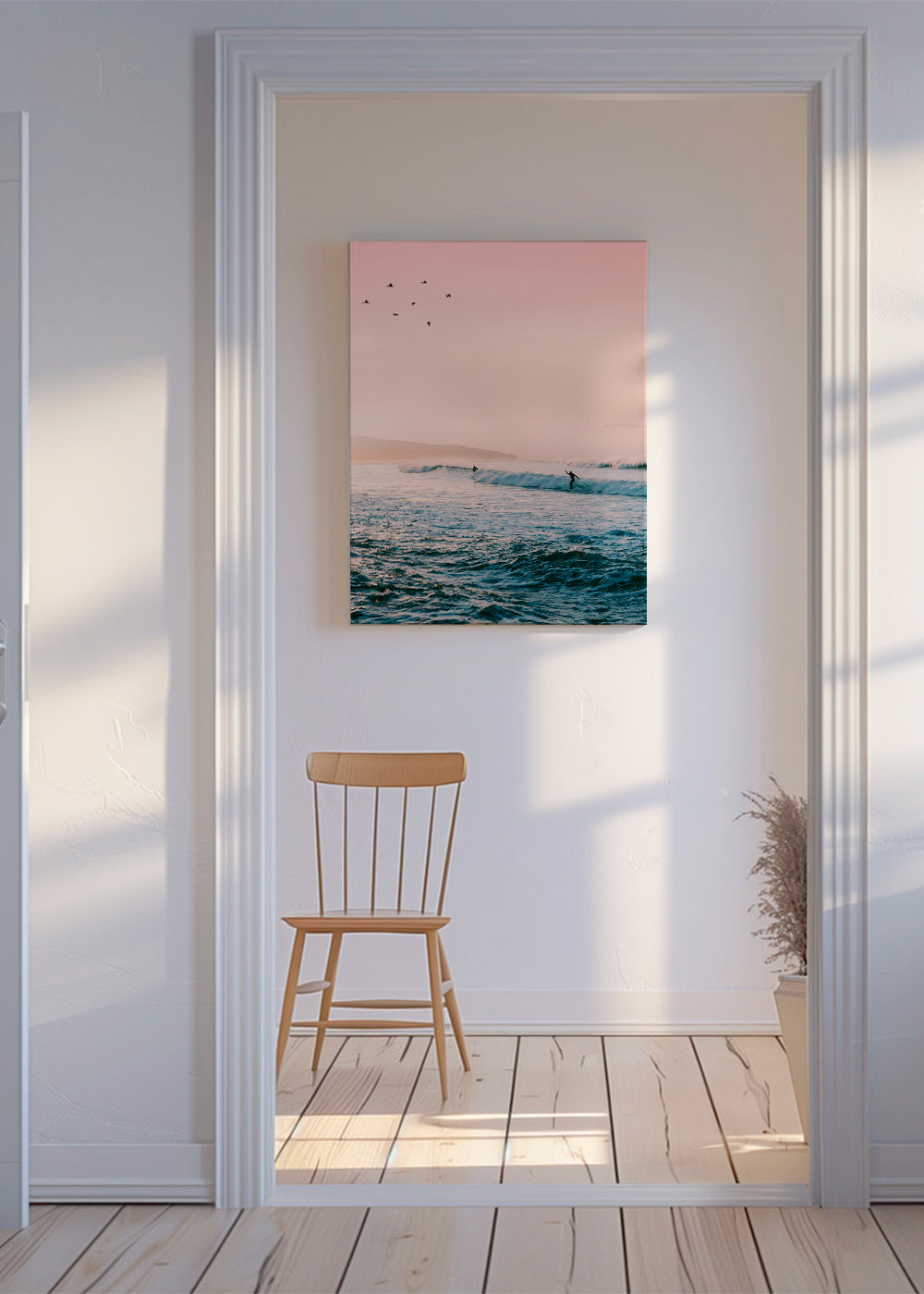 The photopanel or photo panel is a wooden board on which the print with a protective layer is adhered. This panel has a depth of 0.4 in and gives all the prominence to the work, since it is not necessary to frame it. In addition, for this same reason, photos on wood avoid the reflection of the glass or protective plastic of a common painting.