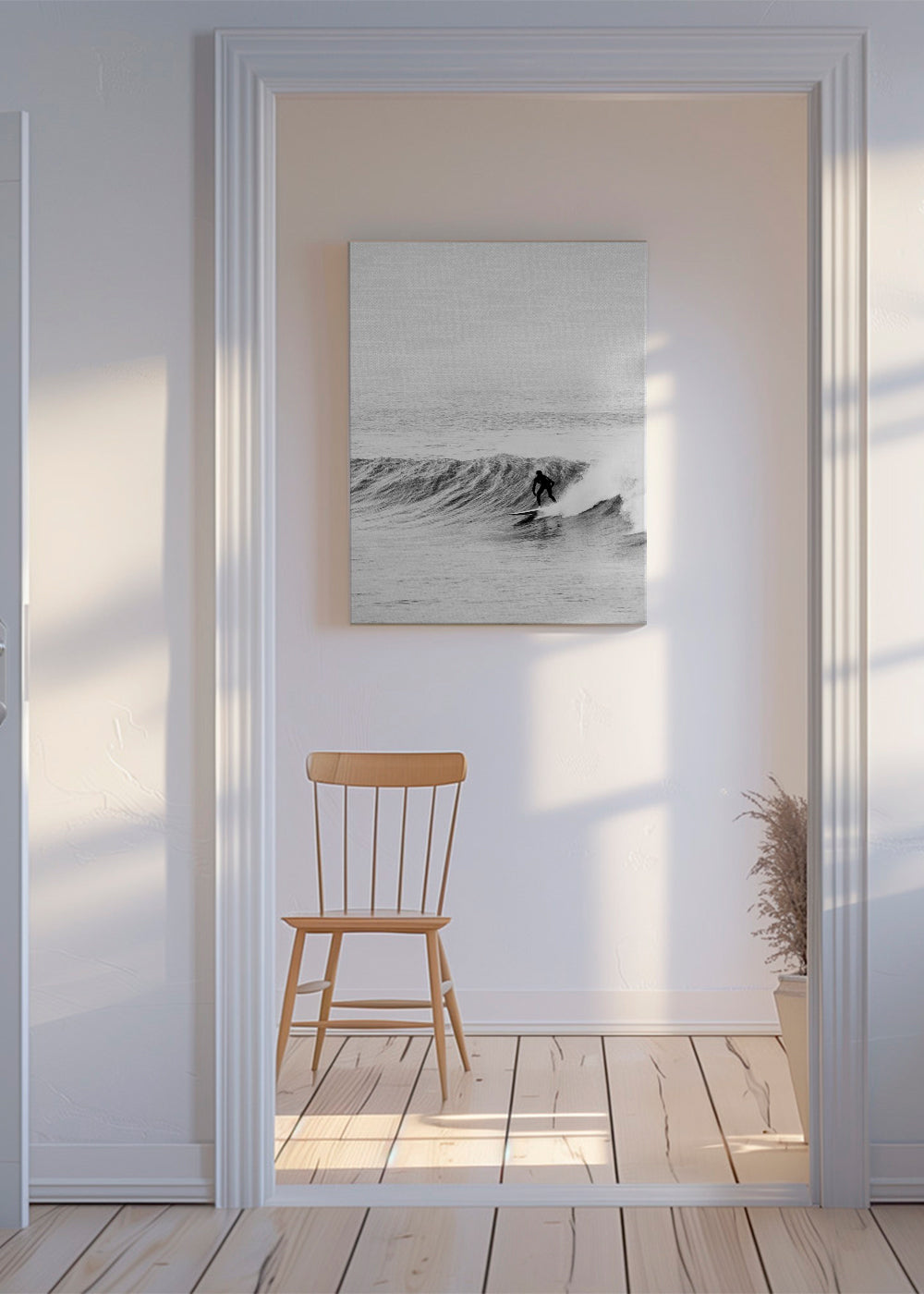 This poster from the surf posters and wall art collection, by creative artist Gal Design, with tones of black and white, and with vertical layout. Landscape prints are spectacular; pair them with texts and phrases to create cool wall compositions. Elegant walls for chic homes.