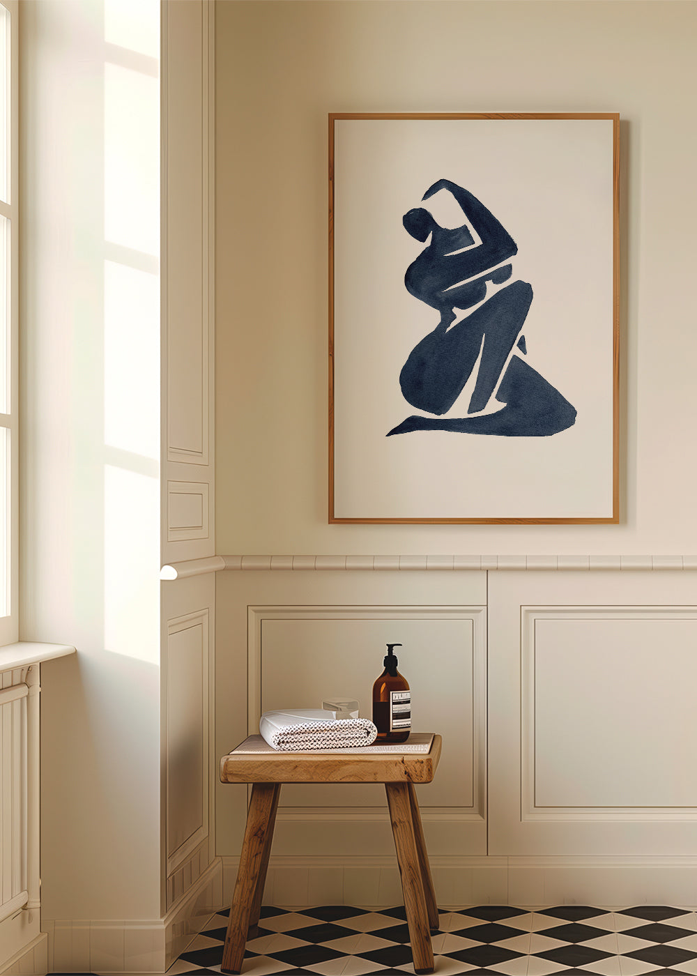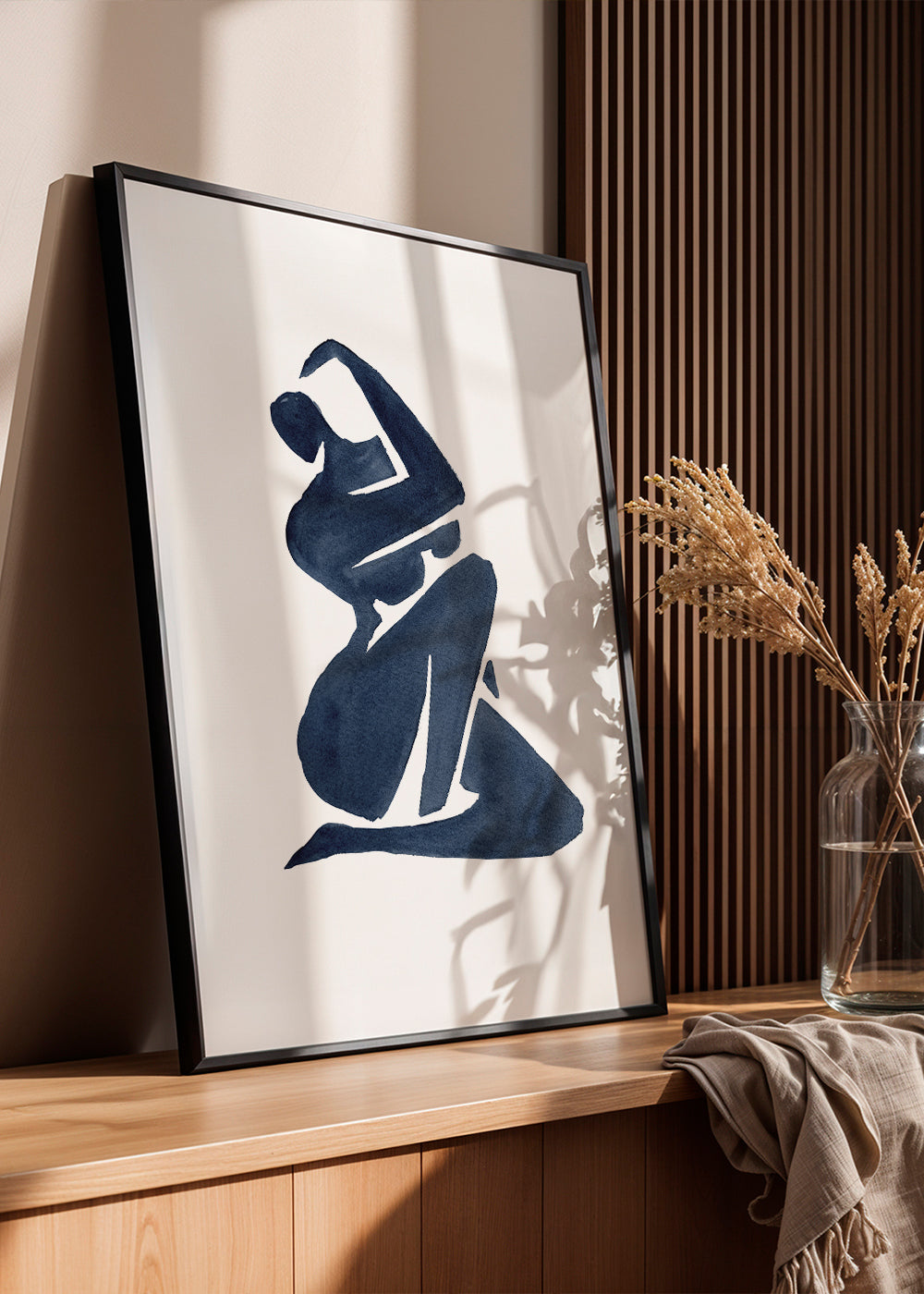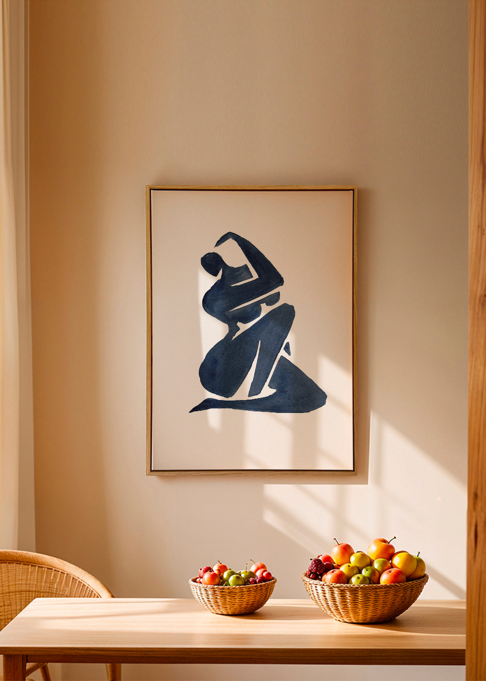 A poster from our repertoire of body shapes posters, by the artist Mike Koubou, in tones of blue, and to hang in vertical position. A perfect piece for spaces bursting with art and creativity. Our drawings are perfect for decorating empty or boring spaces. Fill your decoration with art.