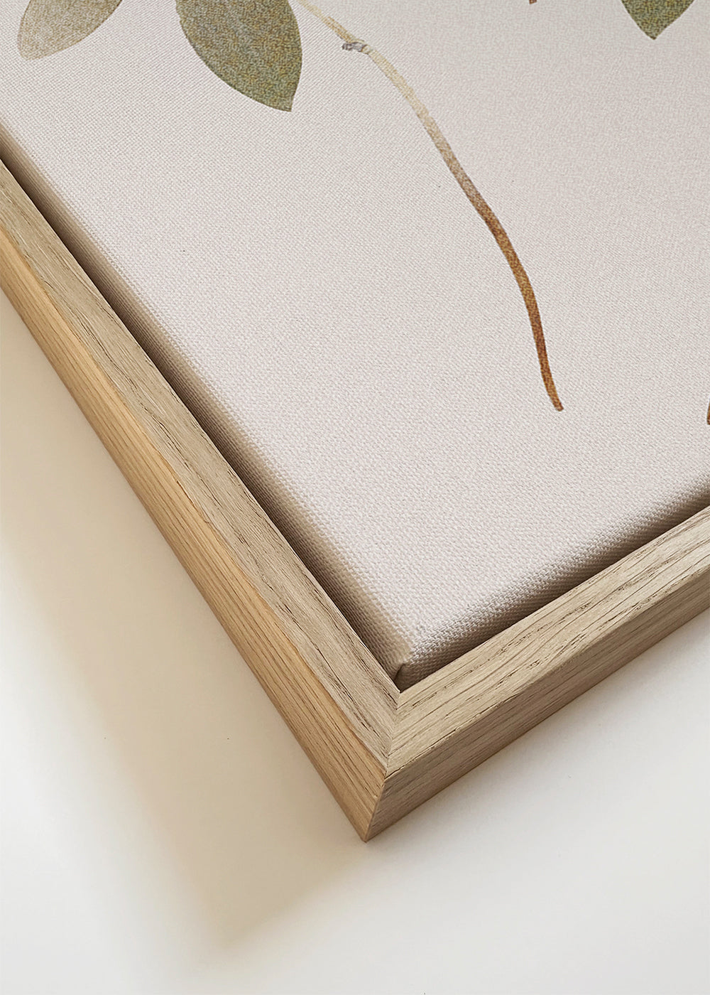 The wooden frames up to 20x28 in (included) have a width of 0.6 in and a depth of 1.2 in, while in the larger ones the width is 0.8 in and a depth of 1.2 in.
