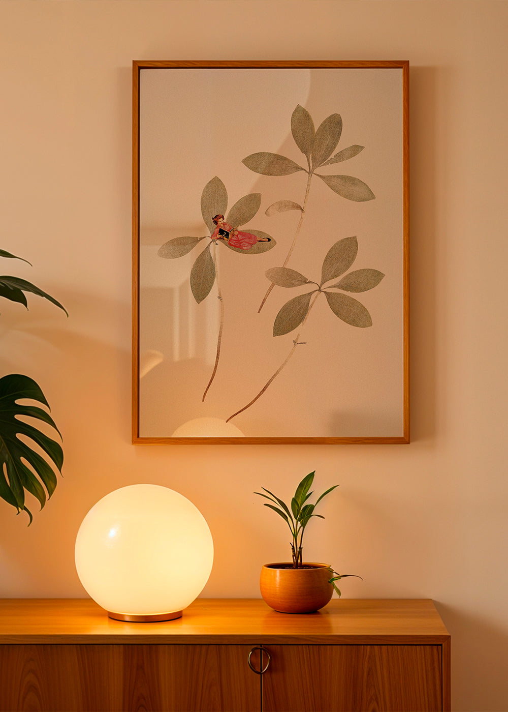 A print from the vintage wall art collection, from the Maarten Léon collection, in tones of green, and vertical layout. A retro style that is perfect for a vintage look. Play around with different combinations of our pieces to get the look you want.