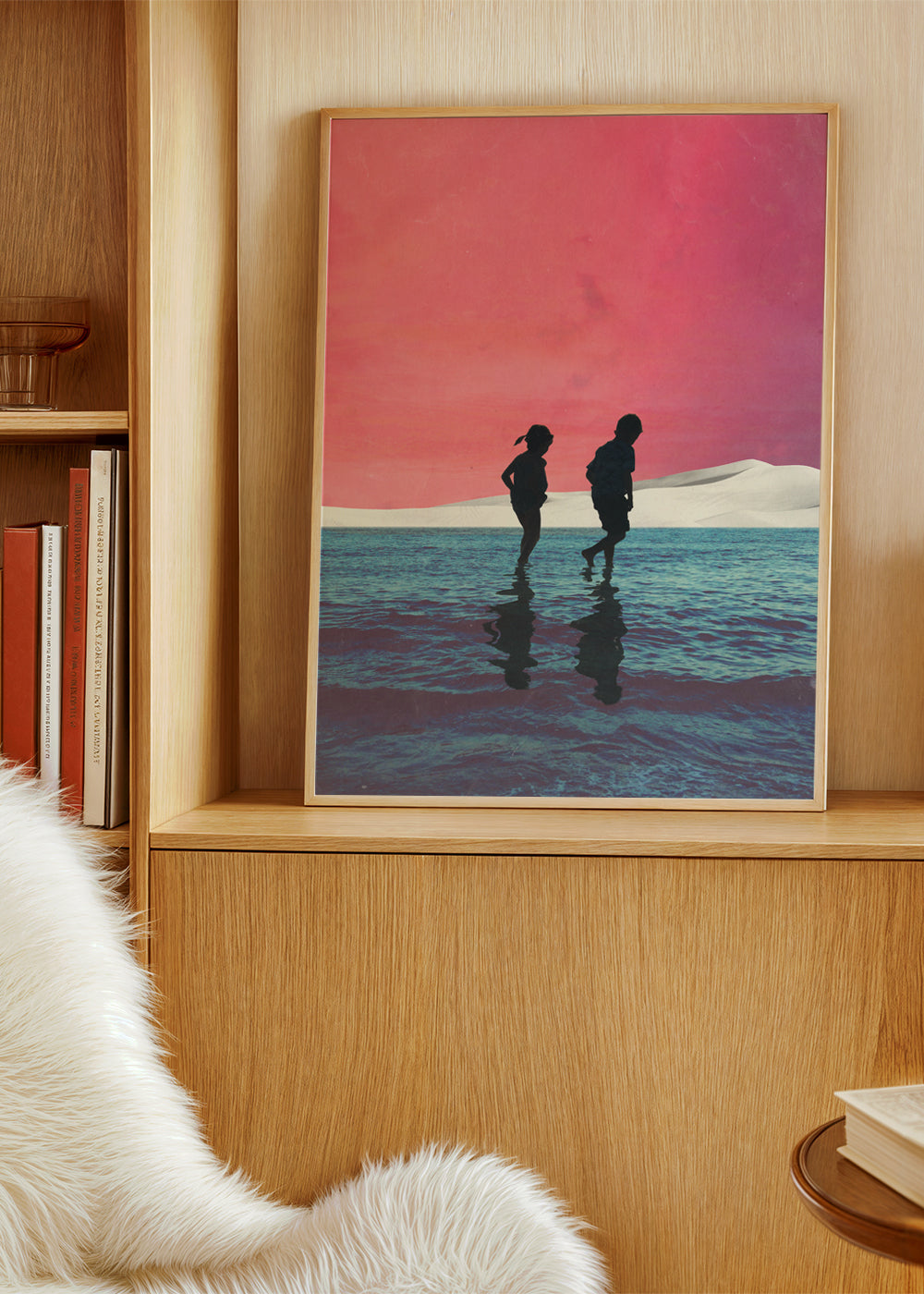 A print inspired by the collection of dreams wall art, from the mind of Frank Moth, with tones of pink, and with vertical layout. A retro style that is perfect for a vintage look. The print your wall has been looking for.