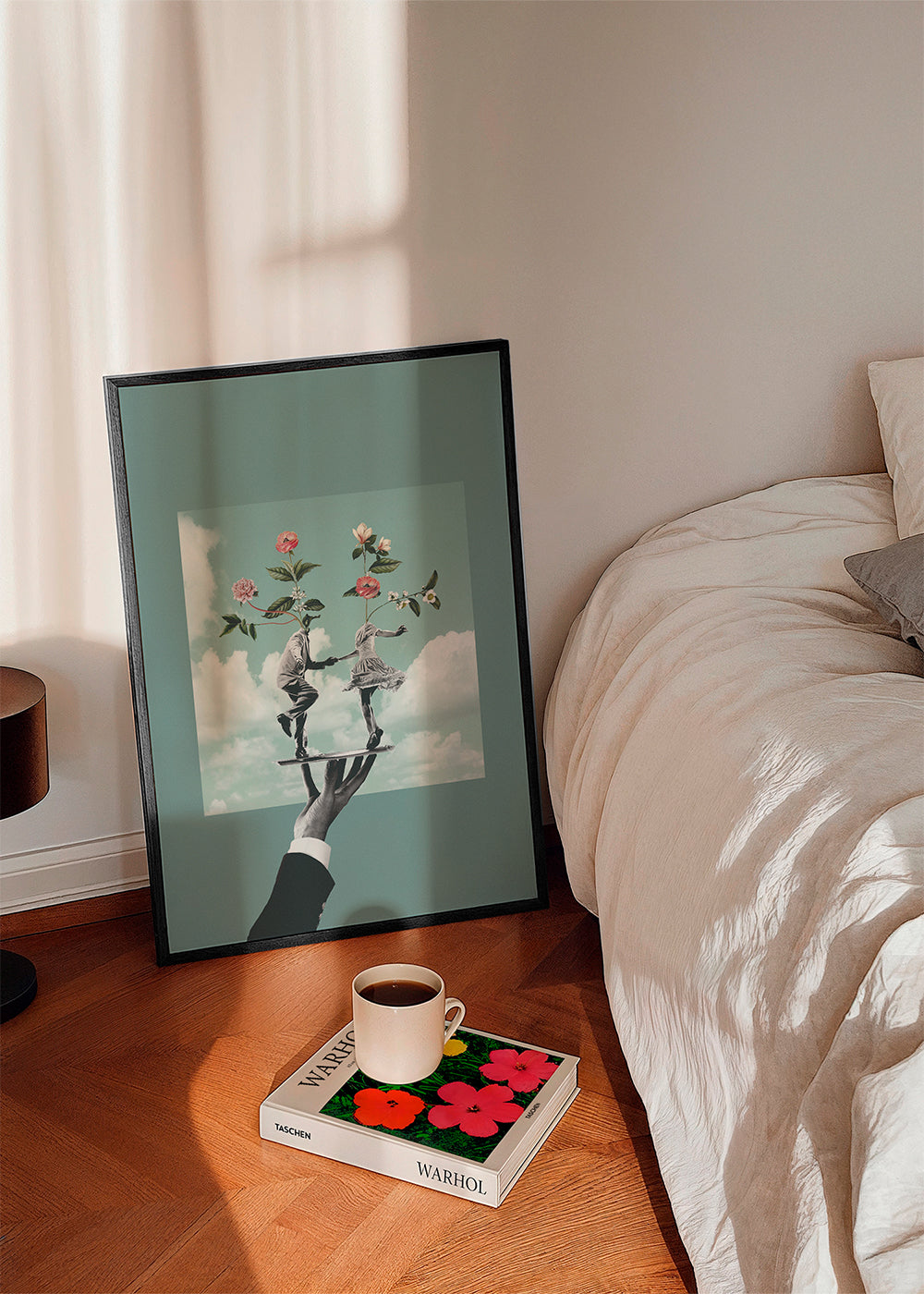 Print: premium 250 gsm art paper, ideal for framing or hanging with poster holders.