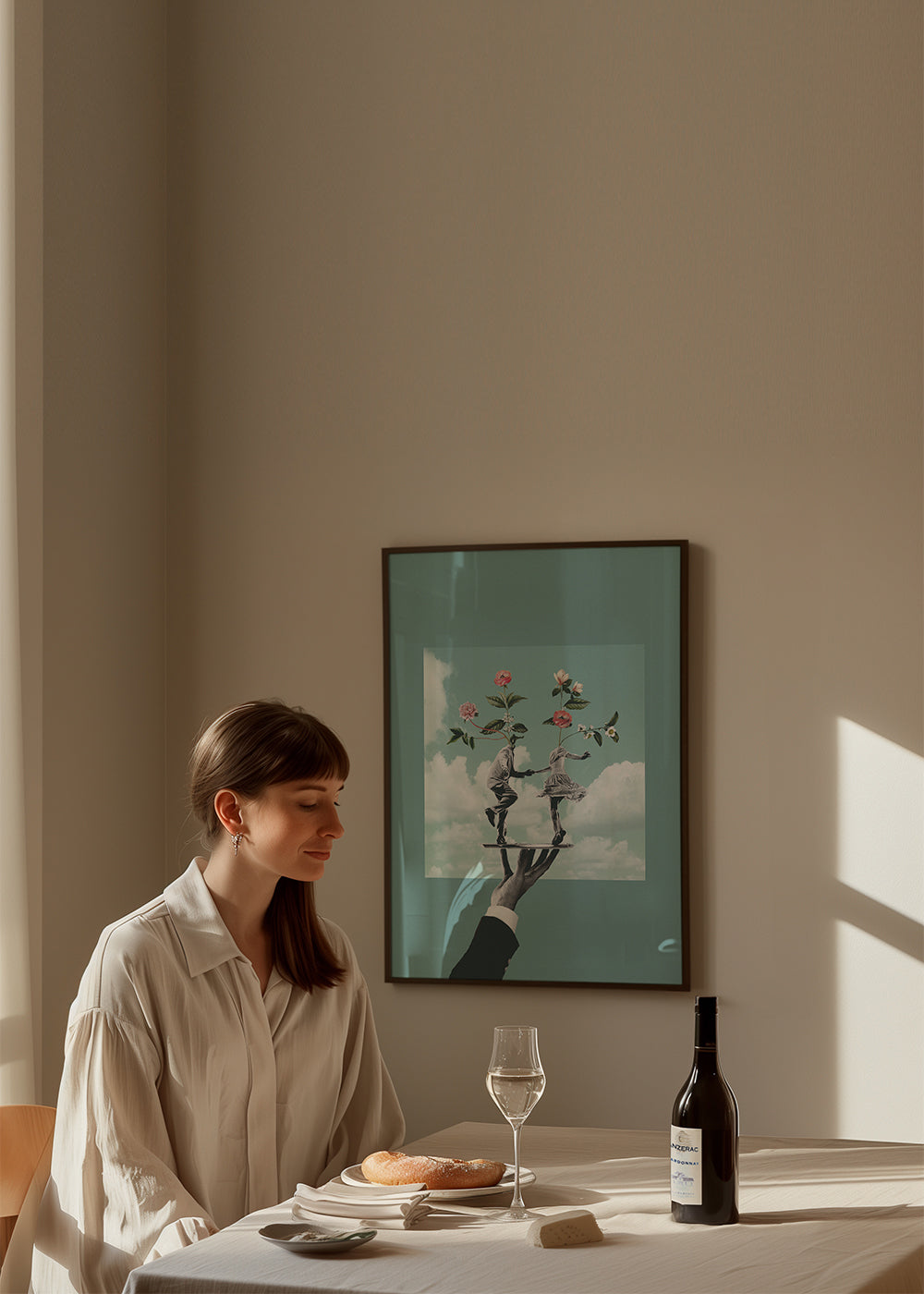 Beautiful piece from our vintage wall art series, by creative artist Maarten Léon, in tones of green, and with vertical layout. A retro poster you can pair with other vintage-style prints for an original touch in the home. Give your decor an artistic touch.