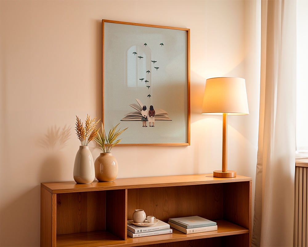 To hang our frames, you need to slightly separate the black or silver metal hanger from the back. Once separated, you can hang it from the hanger that you have chosen depending on the material of your wall.