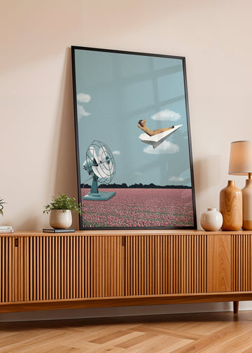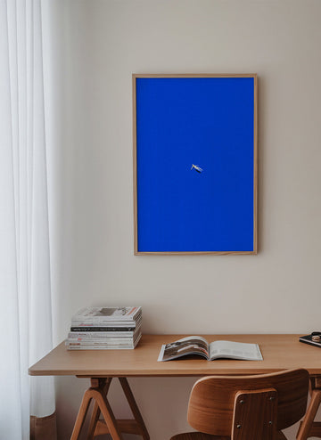 Beautiful piece from the vintage wall art category, by Maarten Léon, with tones of blue, and perfect to hang vertically. Give your style a vintage touch by pairing this print with other retro-style posters. Create your favourite spot.