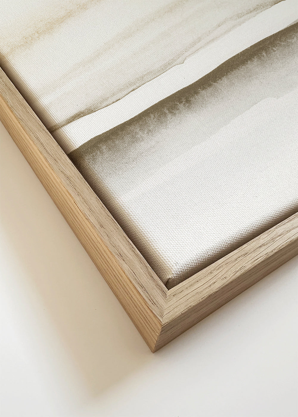 The wooden frames up to 20x28 in (included) have a width of 0.6 in and a depth of 1.2 in, while in the larger ones the width is 0.8 in and a depth of 1.2 in.