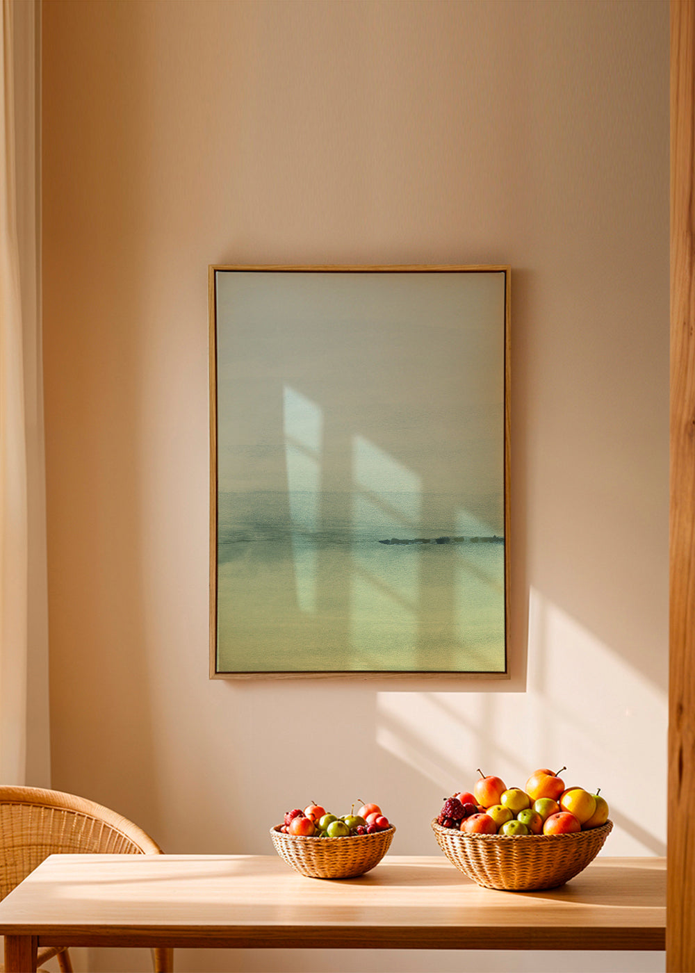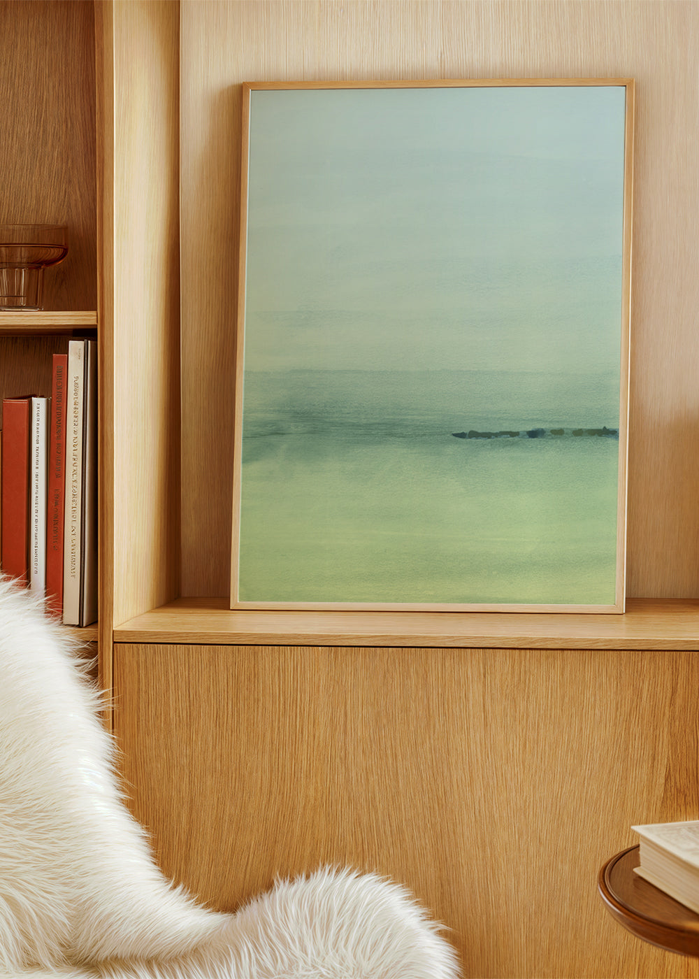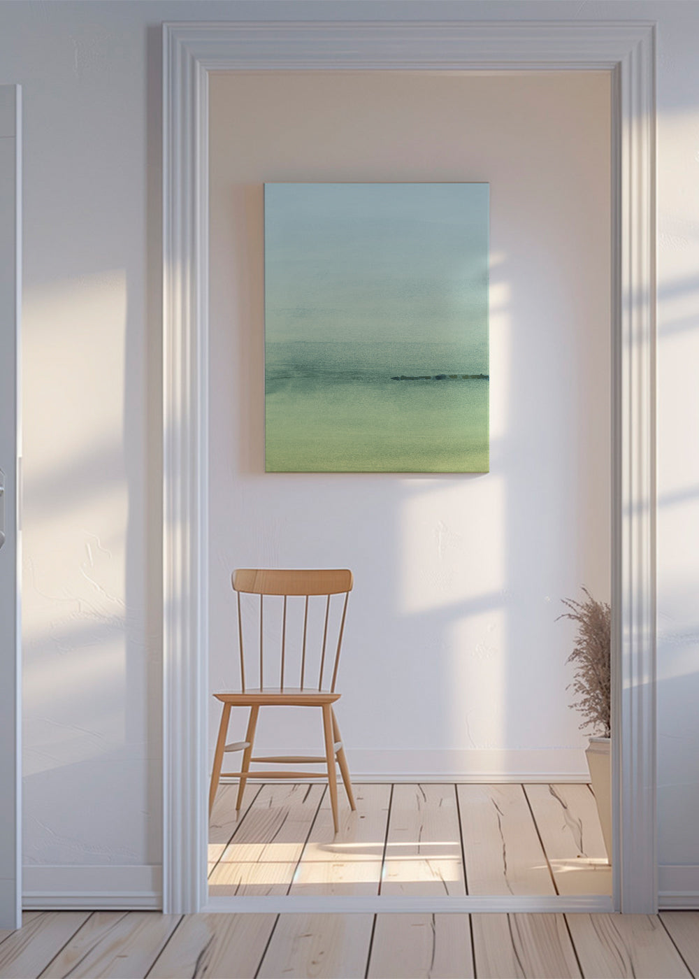 This print inspired by the collection of landscape wall art, by Nouveau Prints, with tones of blue, and to hang in vertical position. The tranquillity and freedom of landscape prints is one of a kind. Let your walls tell a story.