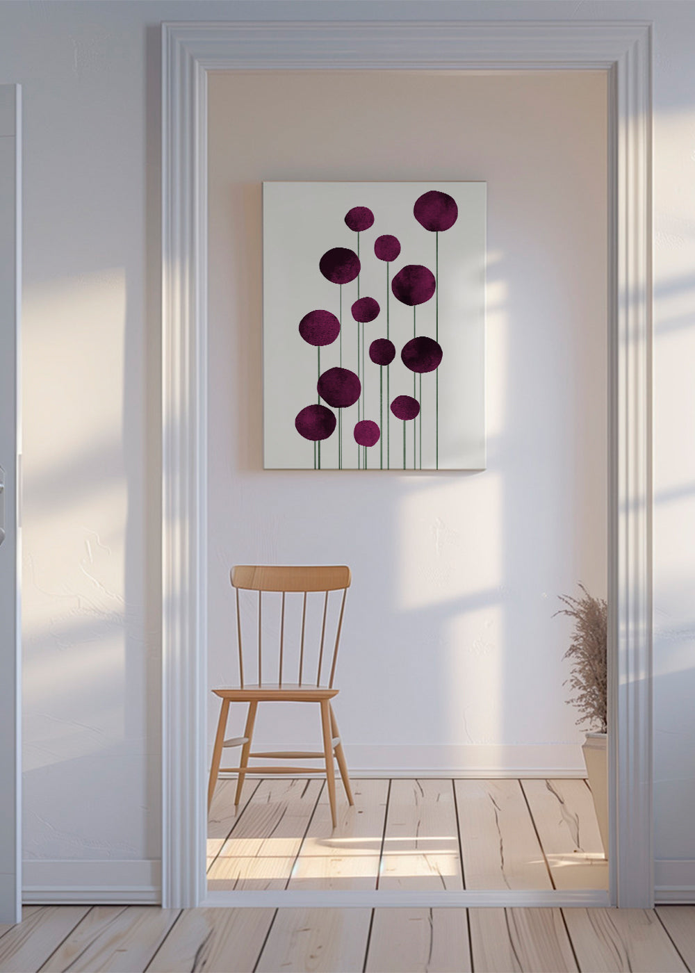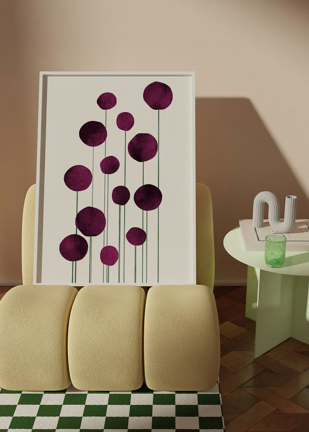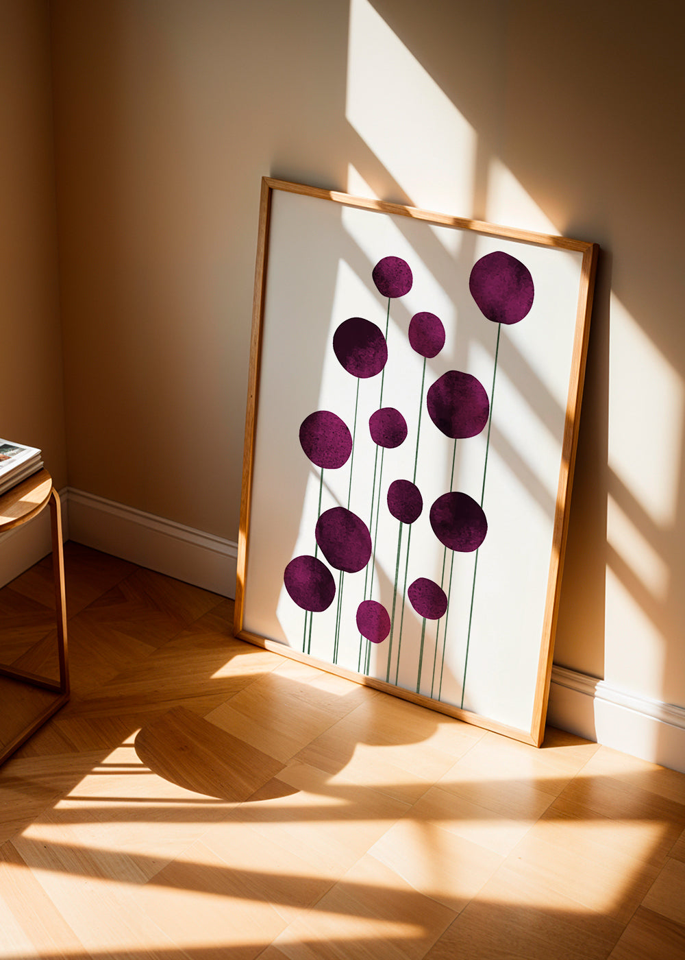 Beautiful poster from the botanical prints and wall art category, by creative artist Kubistika, with shades of purple, and perfect to hang vertically. Illustrated posters are perfect for pairing with minimalist and abstract art. Elegant walls for chic homes.