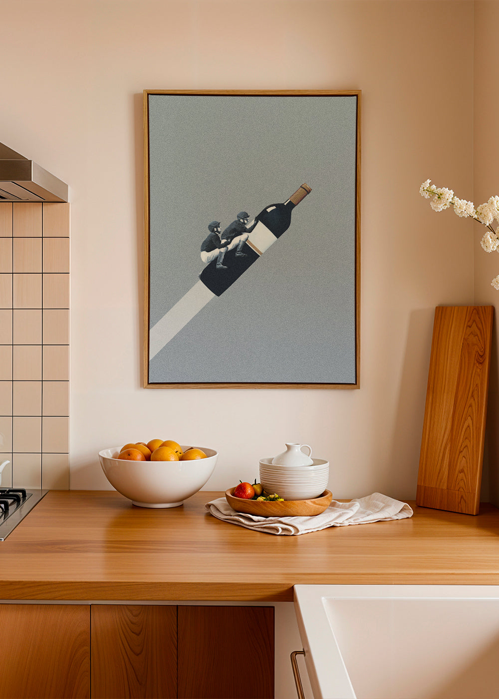 A piece from our selection of vintage wall art, by creative artist Maarten Léon, with touches of blue, and to hang in vertical position. Vintage prints give a super chic touch to any space. Walls full of creativity.
